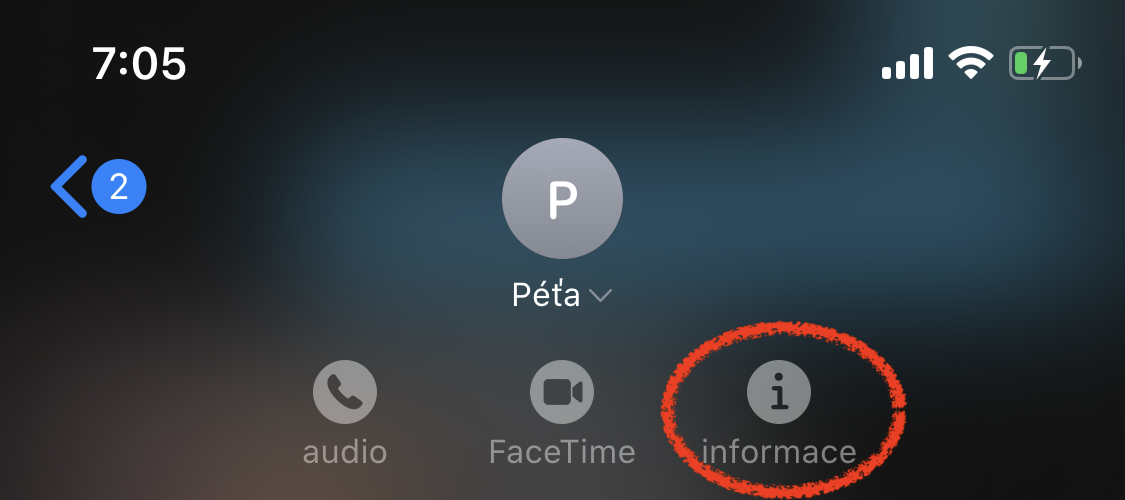 - Klepněte na jméno kontaktu a poté zvolte malé „i“ v kroužku.