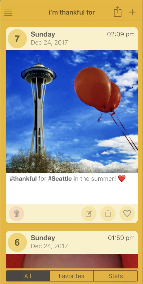 Najděte si čas na sebe a udělejte si radost. Den dokáže být stresující a často na drobné radosti všedního dne zapomínáme. S thankful si tyto okamžiky můžete zapsat a nechat si je připomenout a podpořit tak vlastní pozitivní myšlení. Můžete se inspirovat i ostatními uživateli.
