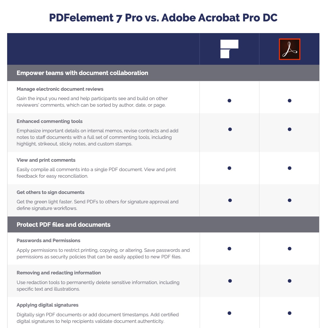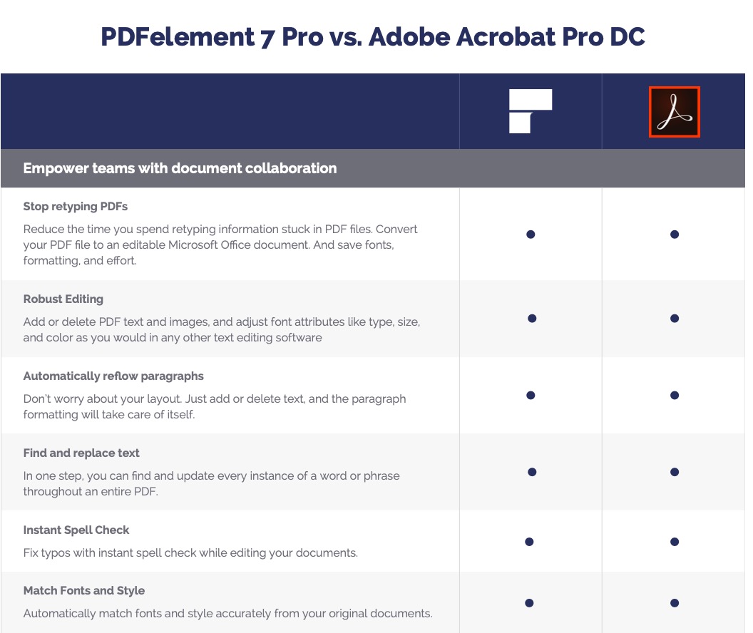 Velké firmy často k úpravě souborů PDF používají známý program Adobe Acrobat. Jak ale jistě víte, tak programy od Adobe jsou často velmi drahé a v mnohých případech ani nenabízejí žádné výhody oproti levnějším a konkurenčním programům navíc. Pokud se rozhodnete pro firemní řešení PDF dokumentů pomocí programu PDFelement 7, tak nejenže dostanete levnější řešení. Dostanete také program, který je o mnoho jednodušší na používání pro uživatele, což mohu potvrdit z vlastní zkušenosti. Nevím proč ale PDFelement mi přijde oproti Adobe Acrobatu o mnoho jednodušší. Pokud se chcete přesvědčit o výhodách a nevýhodách obou programů, tak se mrkněte do galerie, kterou přikládám k tomuto odstavci.