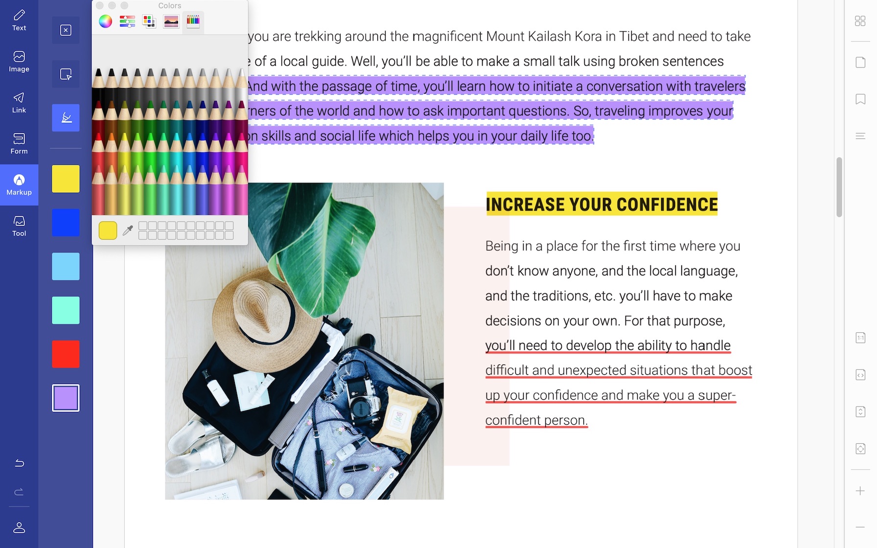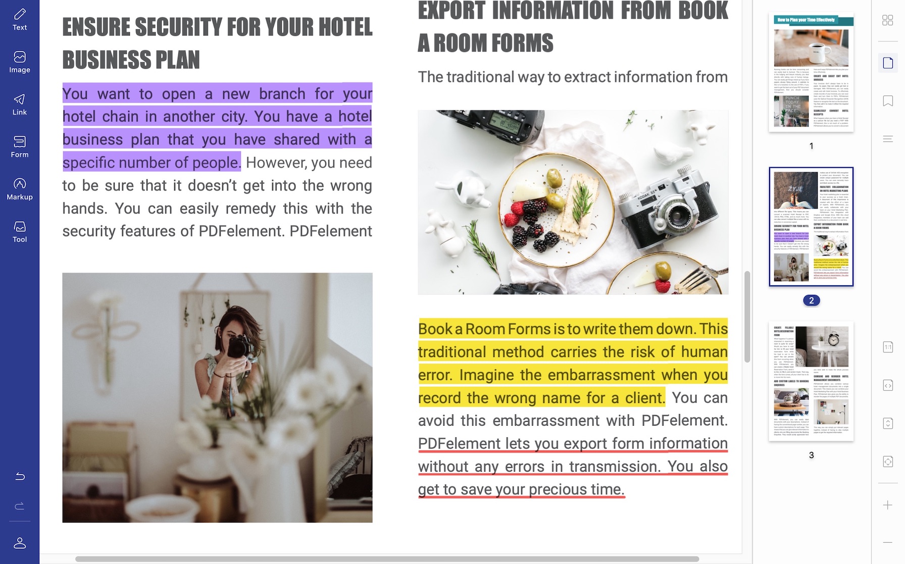 To, co už neuvidíte na první pohled, ale budete se k tomu muset proklikat, jsou samozřejmě nové funkce. Vzhledem k tomu, že je PDFelement určený jak ke zobrazování, tak především k upravování PDF souborů, tak i v tomto případě došlo k několika vylepšením. Možnosti úprav se nyní dočkaly většího rozšíření a s jejich pomocí můžete vytvářet vzhledově parádní dokumenty. PDF dokumenty jsou známy především tím, že je nelze tak jednoduše upravovat, či přepisovat. S PDFelement je však upravovat můžete a v nové verzi dokonce tak, že nemá nikdo šanci úpravu poznat. PDFelement 7 se vždy přizpůsobí tomu, co upravujete – v případě textu využije správné formátování, obrázky poté dokáže nahradit v přesné velikosti.