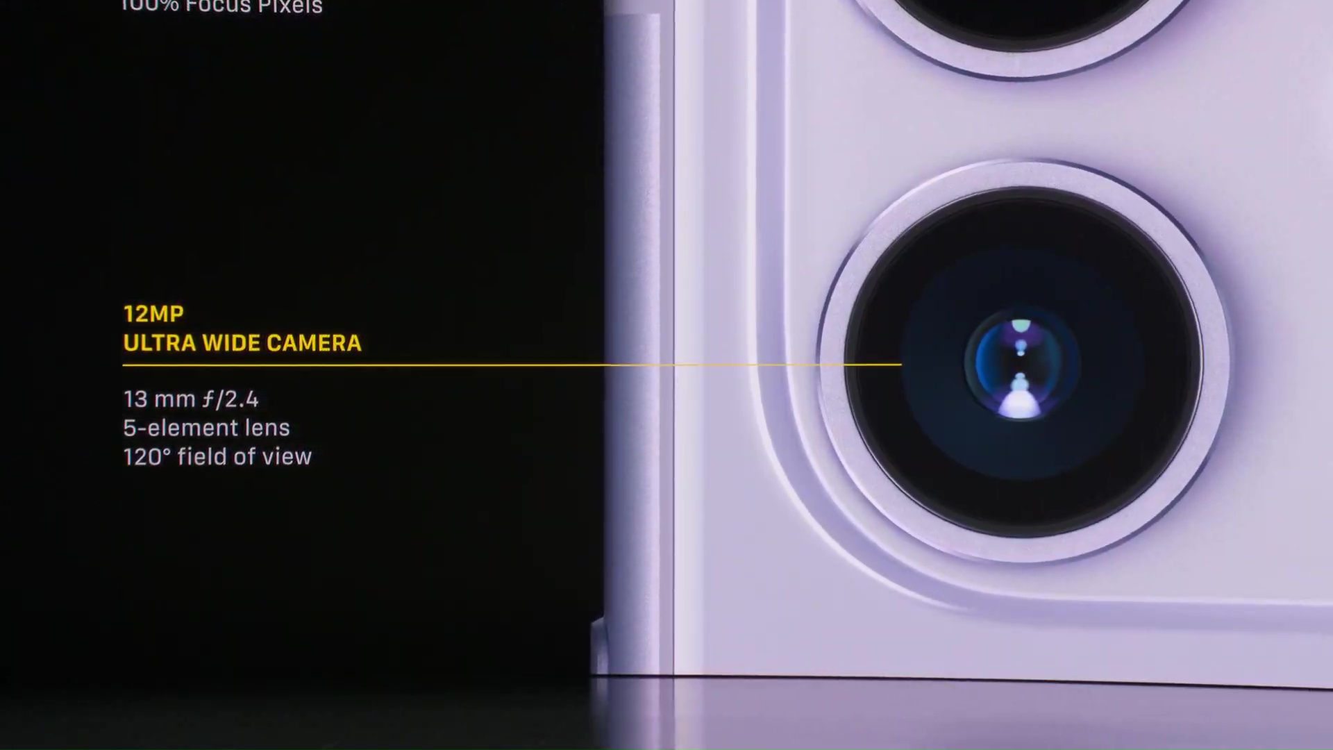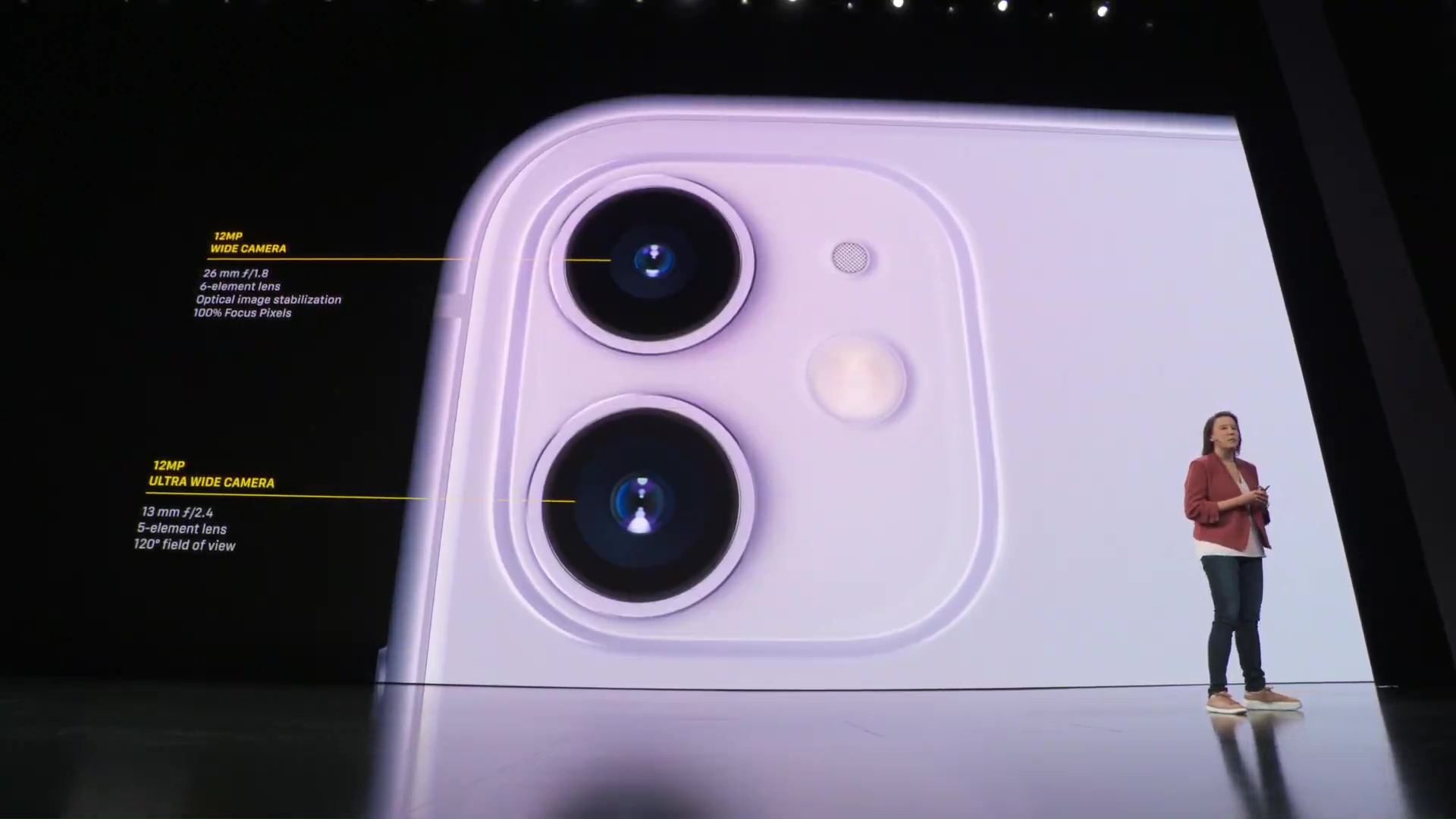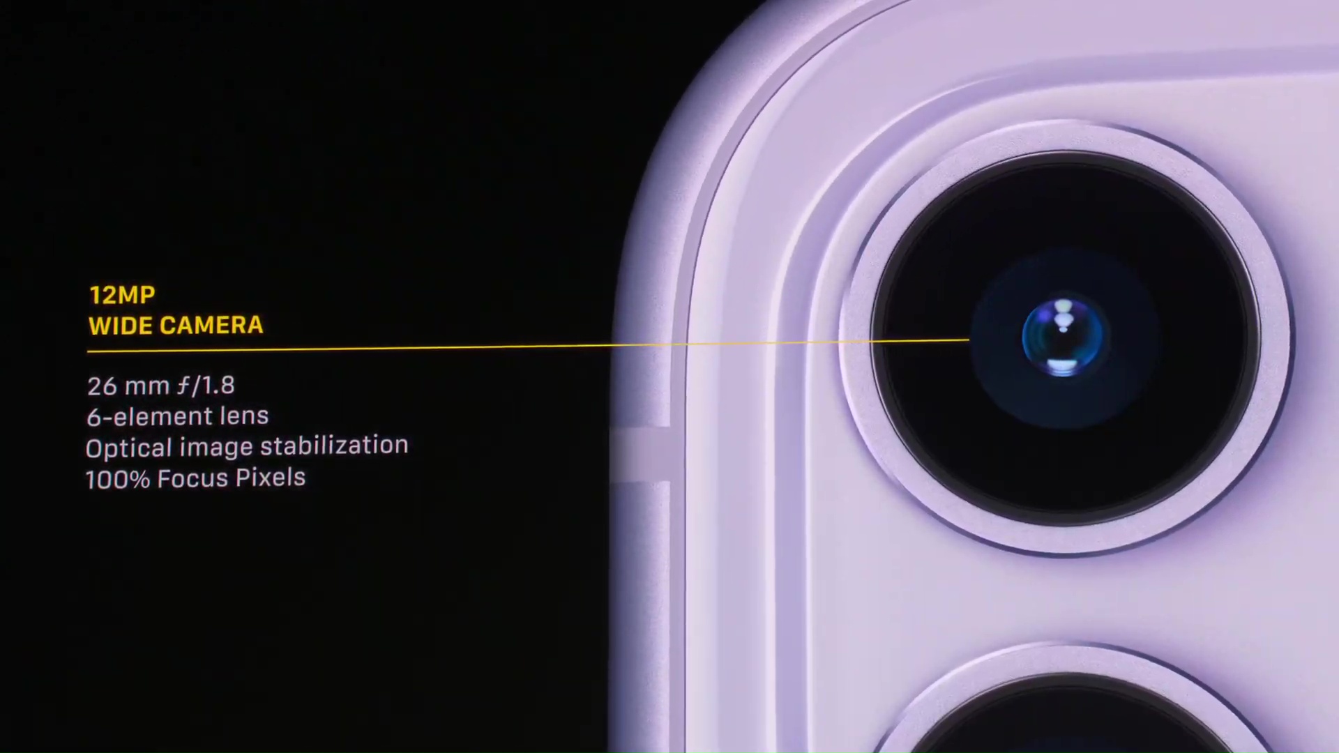 Fotoaparát se dočkal také masivního přepracování – samotné jeho představení trvalo několik dlouhých minut. Na první pohled poznáte změnu v tom, že nyní na zádech iPhonu 11 najdete hned dvě čočky. Jedna z nich je klasická širokoúhlá, disponuje 12 Mpix snímačem a má clonu f/2.4. O mnoho zajímavější je druhá čočka z dvojice, která nese označení ultra-širokoúhlá a má clonu f/1.8. Ta má také 12 Mpix a vyniká především ve focení panoramat. Obě čočky navíc dokáží spolupracovat společně. Při focení využívají nespočtu různých akcí, aby z fotografie udělaly mistrovské dílo – a letos je těchto akcí v pozadí o čtyři navíc. Samozřejmostí je také podpora portrétového módu, který není vázaný jen na obličeje, ale dokáže vyfotit také zvířata či jiné objekty. Při točení videí můžete mezi oběma čočkami přepínat a využívat přiblížení. Přední kamera poté disponuje také 12 Mpix objektivem, se kterým můžete dělat opravdové divy – nově je k dispozici například točení 4K videí v 60 FPS.