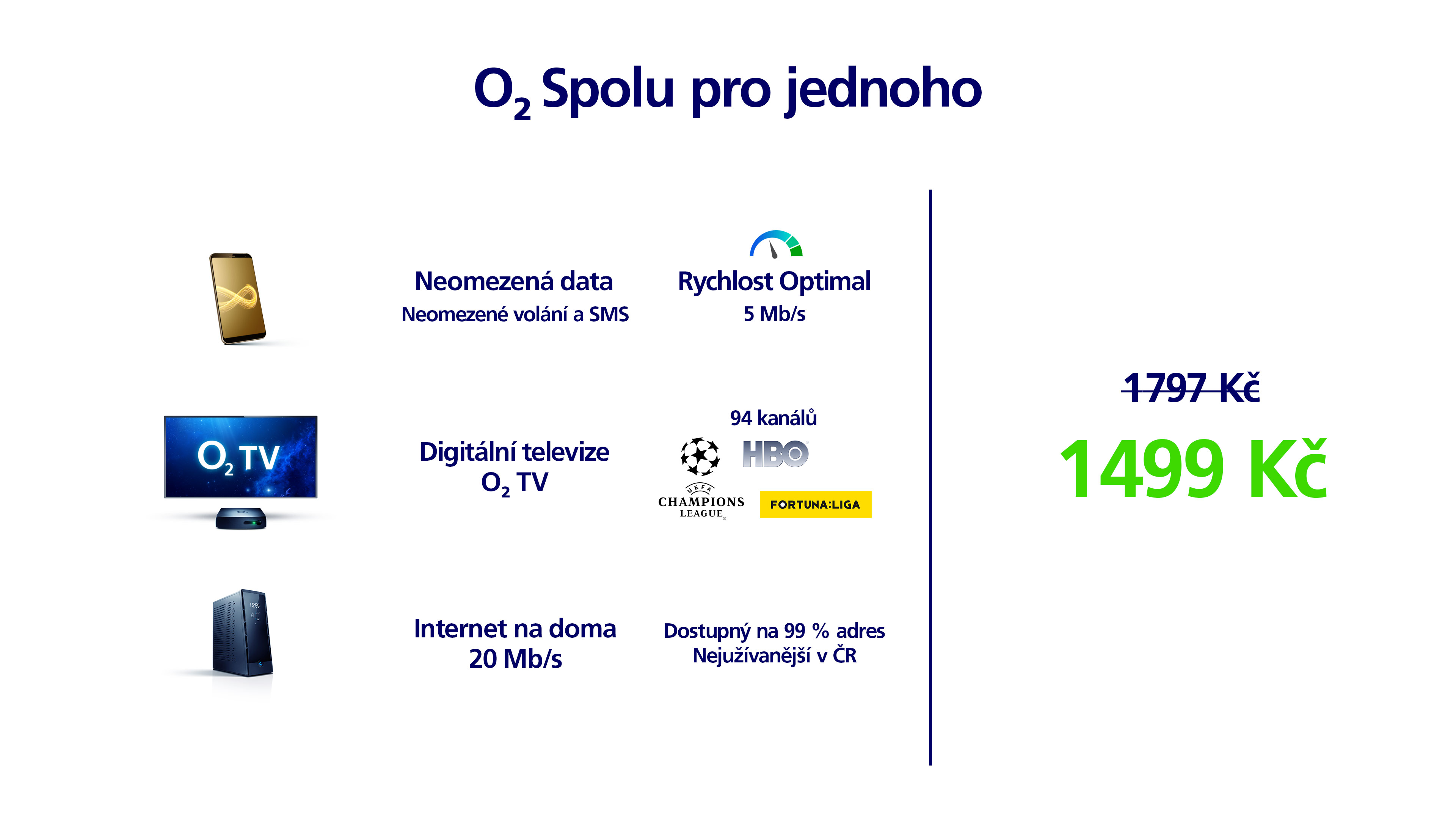 Základním neomezeným tarifem, tedy tarifem se neomezenými daty, voláním a SMS, je NEO Bronzový, který může získat každý už za 1099 korun. Je však potřeba smířit se s rychlostí omezenou na 5 Mb/s. Pokud by vám ta nestačila, sáhnout můžete po tarifu NEO Stříbrný za 1299 korun s tím, že zde fičí internet rychlostí 20 Mb/s. Pro případ, že by ani to nestačilo, můžete sáhnout po tarifech NEO Zlatý či Platinový, které nabízí rychlost až 300 Mb/s. Zatímco za první zaplatíte 1599 korun, za druhý 2499 korun s tím, že v ceně je i 1 GB dat v zóně Top svět a 600 minut volání do zahraničí. Pokud tedy hodně cestujete, tento tarif nevypadá vůbec špatně.