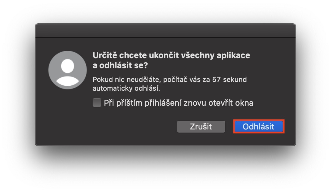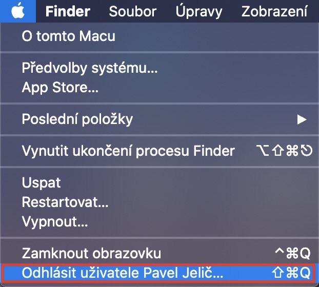 Pokud chcete nejen zavřít všechna okna, ale také všechny otevřené aplikace tak, aby se vymazaly z paměti RAM, tak je postup jednodušší, než se může zdát. Jednoduše stačí, abyste v levé části horní lišty kliknuli na ikonu loga Apple, a poté z rozevíracího menu vybrali možnost Odhlásit uživatele Jméno Příjmení… Poté se zobrazí malé okno, kde už jen stačí odškrtnout možnost Při příštím přihlášení znovu otevřít okna. Jakmile se odhlásíte a znovu přihlásíte, tak už můžete začít s čistým štítem.