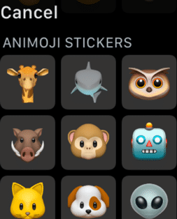 Samolepky Animoji jsou ve watchOS 6 integrované přímo v obrazovce pro odpovědi na zprávy. Stačí v konverzaci klepnout na tlačítko pro odpověď a spolu s emojis se vám zobrazí také Animoji samolepky. Možnost odpovědi na zprávy s pomocí Animoji a Memoji zavedla společnost Apple s příchodem iPhonu X. Ten díky vylepšenému přednímu fotoaparátu umožňuje naskenování obličeje uživatele a následného vytvoření animovaného smajlíka.