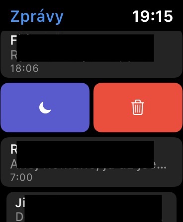 Apple Watch jsou užitečné kromě jiného také v tom, že vás vždy upozorní na jakoukoliv zprávu nebo příchozí hovor. Ne vždy jsou ale neustálé notifikace na nejrůznější druhy zpráv vhodné. Pokud potřebujete ztlumit pouze vybranou konverzaci a nechcete na hodinkách zapínat režim Nerušit, watchOS 6 vám to umožní. V zobrazení konverzace stačí potáhnout prstem doleva a klepnout na ikonku ztlumení.