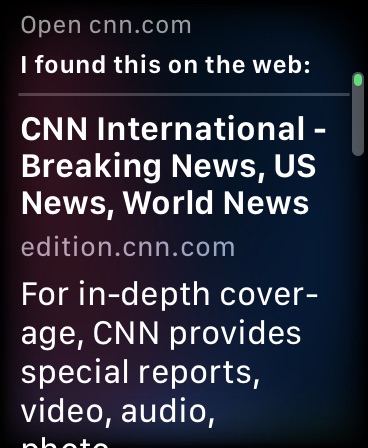 Apple Watch (prozatím) nemají vlastní verzi prohlížeče Safari, pro procházení webu ale můžete snadno využít Siri. Stačí hlasovou asistentku aktivovat a vydat příkaz typu „Open cnn.com“. Otevřenou stránku můžete procházet, klepnout na její jednotlivé části nebo si ji nechat zobrazit v režimu čtečky. Procházení webu v prostředí operačního systému watchOS pochopitelně není úplně pohodlné, pro rychlý přístup k příslušným informacím ale bohatě stačí. Tímto způsobem můžete snadno a rychle číst například zpravodajství.