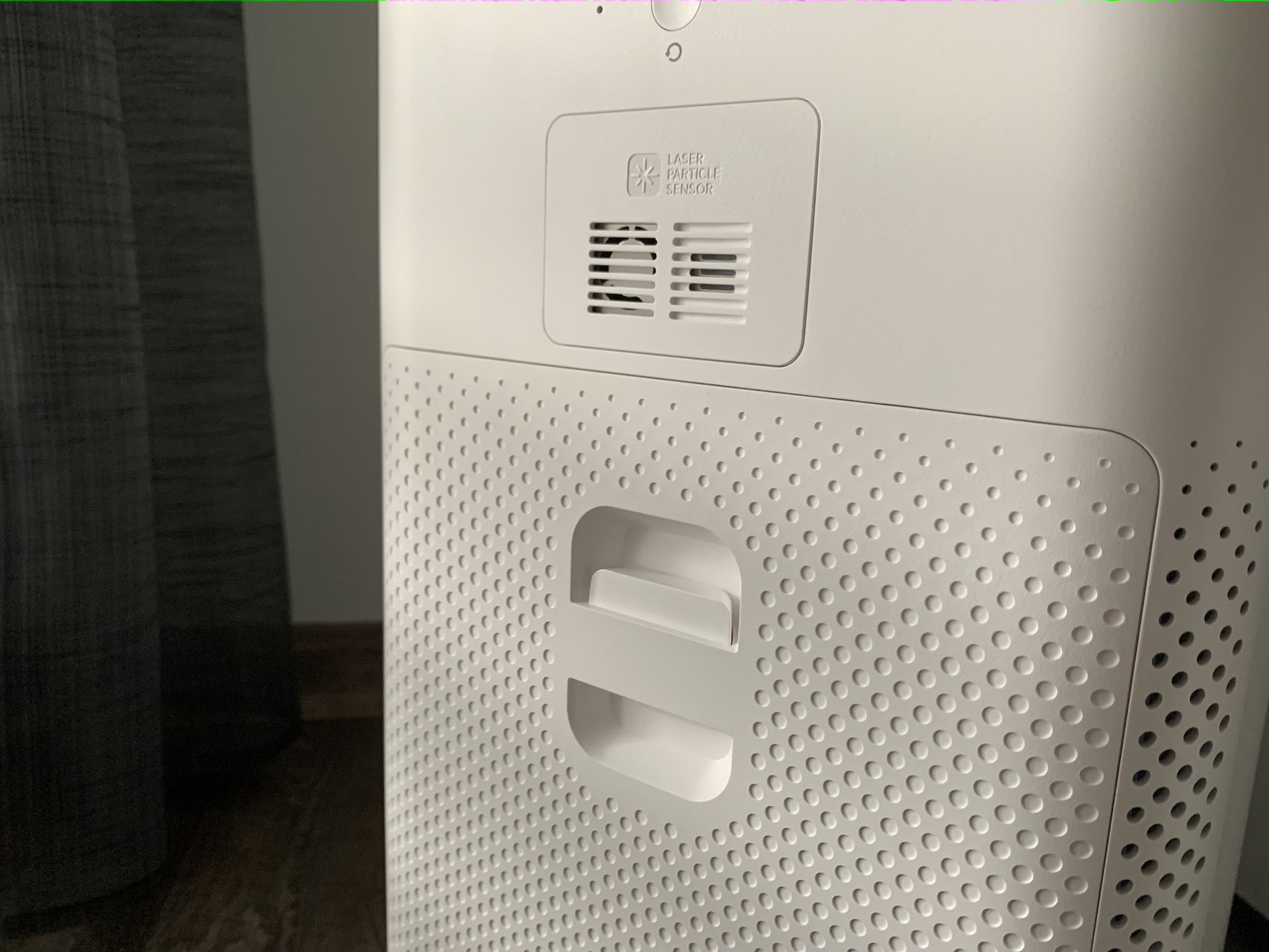 Když čističku zapnete, tak se vám na displeji na několik sekund objeví informace o tom, jak je na tom životnost filtru. Tato informace po chvilce zmizí a vystřídá ji druhá obrazovka, kde už se zobrazuje hodnota jemného polétavého prachu (značka pm2.5) v jednotkách mikrogram na metr krychlový, tedy μg/m3. Kromě této informace, která na displeji zabírá velkou část plochy, se poté níže nachází teplota vzduchu, jeho vlhkost, připojení k domácí Wi-Fi síti a nakonec také aktivní mód. O posledních dvou zmíněných ikonkách si řekneme v dalším odstavci. Pokud byste se chystali pro výměnu filtru, tak jen stačí čističku vypnout a zadní vrátka pomocí jednoduchého mechanismu jednoduše otevřít a filtr podle obrázkového návodu na dvířkách vyměnit. Nad samotnými dvířky se poté ještě nachází malá mřížka, pod kterou najdete detektor částeček prachu. Ten byste měli také čas od času profouknout, jako je uvedeno na dvířkách.