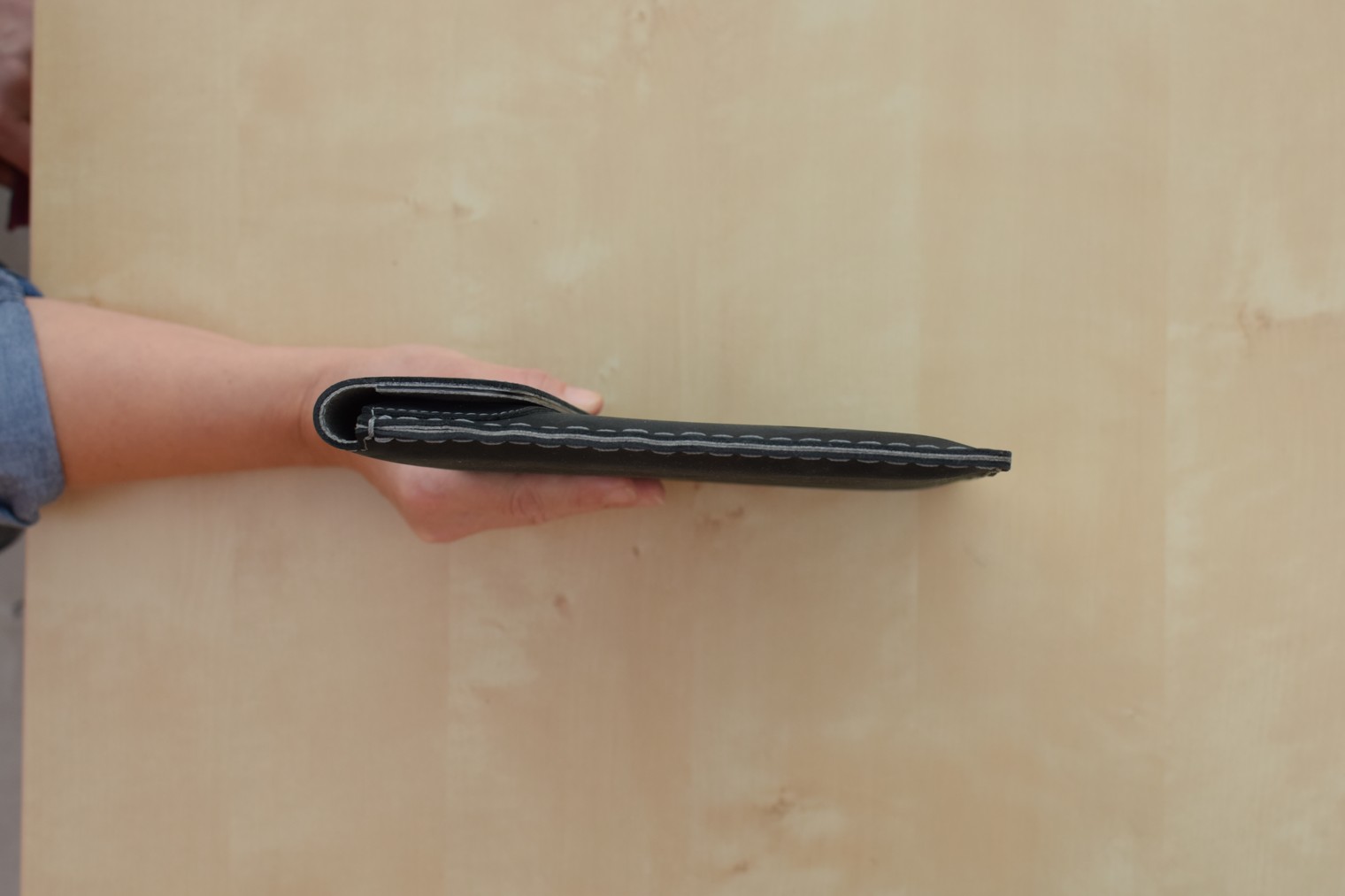 Když jsem pouzdro poprvé uchopil do rukou, velmi mile mě překvapil jak jeho vnější, tak i vnitřní matný povrch. V obou případech je velmi jemný, avšak zatímco zvenčí vcelku kluzký, zevnitř na mě naopak působí, jak jsem již zmínil i výše, mírně protiskluzově. Jedná se sice o detail, avšak lze na něm perfektně vidět, že se u pouzdra přemýšlelo nad každým detailem a “neodfláklo se” jen jedním typem materiálu, což by jeho výrobu teoreticky i urychlilo. Místo toho se však dbalo jak na design, tak na funkčnost, díky čemuž vzešel právě tento kožený krasavec.