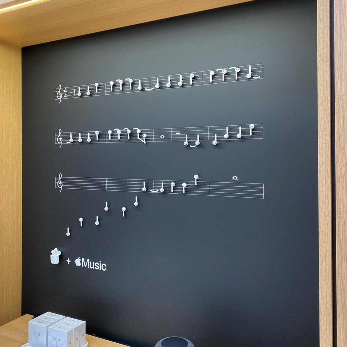 Výstavba nového obchodu se nakonec povedla a slavnostní zahájení připadlo na 20. září, kdy do interiéru začali proudit první nadšenci. Spolu s touto jedinečnou událostí si společnost připravila několik překvapení, včetně panelu složeného pouze ze sluchátek AirPods. Zařízení ale netvoří jen pouhé pozadí, sluchátka jsou totiž vyskládána na zdi do tvaru not a dotvářejí hezkou kulisu. Apple má ale vždy něco za lubem a nejinak tomu je i u tohoto zvláštního tvaru. Easter egg, tedy skryté překvapení, spočívá ve využití samotných zařízení, jež nejsou jen pro parádu. Každé totiž reprezentuje jednu část skladby z reklamy “Here’s to the Crazy Ones”, vysílané v 90. letech. Opravdu tedy slouží jako noty a dohromady tvoří celou znělku.