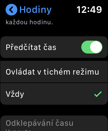 Možná jste nevěděli o funkci, kdy stačí, abyste podrželi dva prsty na ciferníku a Apple Watch vám sdělí, kolik je právě hodin. V minulosti byla tato funkce dostupná pouze u ciferníků s Mickey Mousem, avšak ve watchOS 6 je tato možnost k dispozici už u všech ciferníků. Jediné, co musíte pro aktivaci funkce udělat je, že přejdete do Nastavení, kde rozkliknete možnost Hodiny. Zde aktivujte funkci Předčítat čas a níže zvolte možnost Vždy.