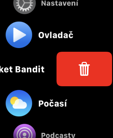Pokud na vašich Apple Watch používáte namísto mřížkového zobrazení raději to listové, tak možná nevíte, že i zde lze jednoduše mazat aplikace. Jednoduše si najděte aplikaci, kterou chcete smazat, a poté na ni chvilku přidržte prst a přejeďte s ním zprava doleva. Zobrazí se červená ikona koše, na kterou stačí kliknout a volbu potvrdit stisknutím tlačítka Smazat aplikaci. Nově můžete ve watchOS 6 mazat i většinu nativních aplikací.