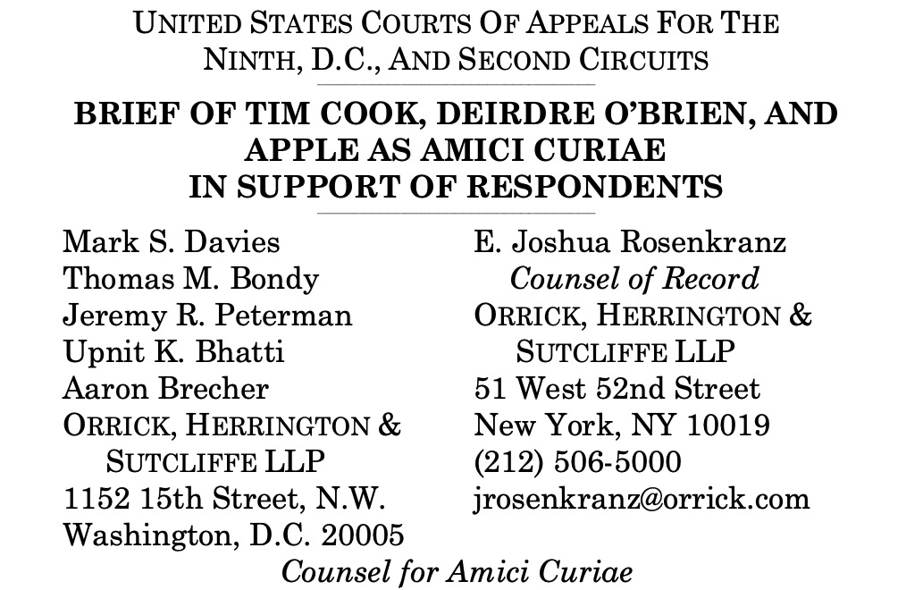Oba dva tito představitelé kalifornského giganta byli v rámci projednávání na pozici přátel soudu. To znamená, že soud nemohli nijak ovlivnit, avšak mohli mu sdělit své myšlenky a názor na věc. V roce 2017 Apple zaměstnával 250 snílků – z anglického slova Dreamers, tj. lidé na území Spojených států díky programu DACA. U soudu se nechal Apple slyšet, že momentálně se tohle číslo zvýšilo na 443 snílků, napříč 36 státy po celých Spojených státech. Všichni tito snílci, kteří jsou v Applu zaměstnaní, pochází z 25 různých zemích z celého světa.