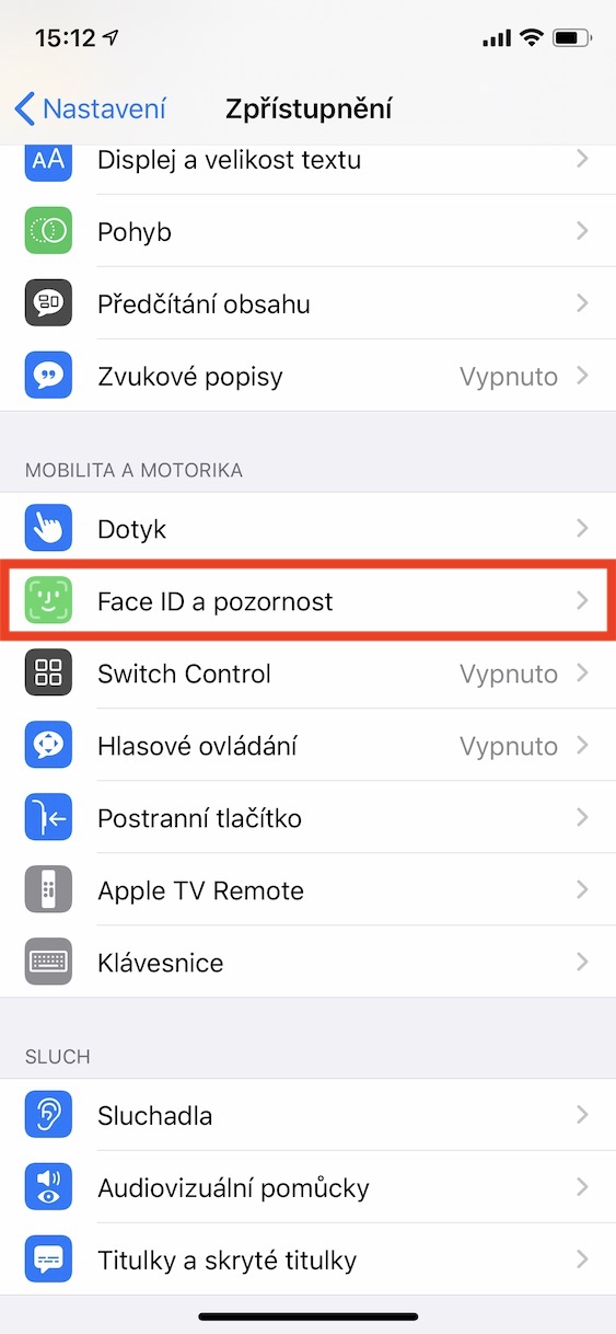 Abyste přidali haptickou odezvu při úspěšném ověření pomocí Face ID, tak se na vašem iPhonu X a novějším přesuňte do nativní aplikace Nastavení. Jakmile tak učiníte, tak sjeďte níže a rozklikněte kolonku s názvem Zpřístupnění. Poté stačí opět sjet o něco níž, kde se nachází sekce s názvem Face ID a pozornost. Tady už jednoduše stačí, abyste pomocí přepínače funkci s názvem Haptika při úspěšném ověření aktivovali. Pokud tedy po aktivaci této funkce dojde k odemknutí iPhonu, autorizaci transakce přes Apple Pay nebo věření nákupů v iTunes Storu a App Storu pomocí Face ID, tak se přehraje haptická odezva.