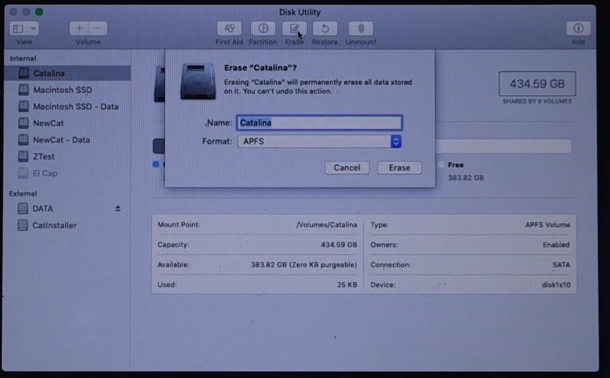Poté už stačí Mac či MacBook restartovat, a poté při nabíhání systému podržet klávesu Option. Odsud si zvolte flash-disk, na kterém se nachází instalace macOS 10.15 Catalina. Tímto se po chvilce dostanete do režimu zotavení. Pokud chcete zachovat vaše data, tak zde musíte váš předchozí pevný disk odpojit, a poté konvertovat pomocí Diskové utility na formát APFS – v diskové utilitě jej označte, a poté v horním menu vyberte záložku Edit a klikněte na možnost Covert to APFS. Pokud vám na datech nezáleží, tak disk stačí jednoduše na APFS naformátovat. Jakmile provedete formátování, tak zvolte možnost Reinstall macOS. Pak už si jen stačí vybrat disk, na který se má macOS 10.15 Catalina nainstalovat (musí být APFS). Po instalaci se Mac restartuje. Při startu systému se na obrazovce objeví řádky s příkazy. Rozhodně se není čeho bát, jedná se o implementaci souborového systému APFS do vašeho Macu. Tyto řádky s příkazy se budou zobrazovat po každém startu macOS, a proto si na ně budete muset zvyknout. Jakmile vše proběhne správně, tak už se na obrazovce objeví klasické logo Apple a dojde k dokončení instalace. Poté se opět objevíte v rozhraní zotavení macOS, kde zvolte možnost macOS Post Install. Poté vyberte model vašeho Macu, aby se mohly správně nainstalovat dodatečné ovladače a volbu potvrďte. Poté už je postup prakticky úplně stejný, jako kdybyste svůj Mac poprvé otevřeli – přihlásíte se k vašemu Apple ID, nastavíte si předvolby a je hotovo.