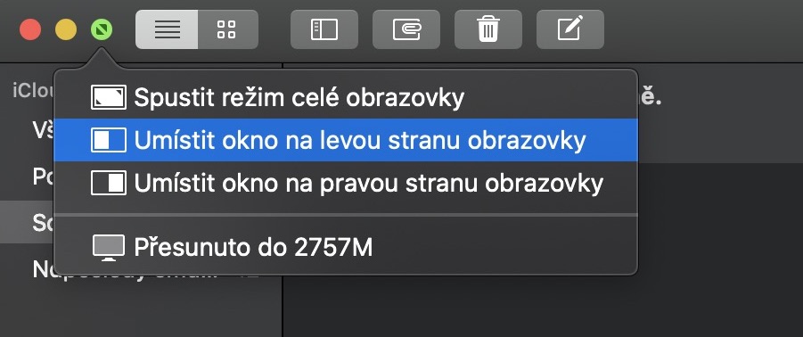Pokud potřebujete na Macu pracovat v rámci vícero aplikací najednou, tak můžete využít funkcí multitaskingu. Někteří uživatelé preferují klasický multitasking pomocí externích monitorů, avšak ne každý možnost přídavného monitoru má. V rámci macOS je tedy již po dlouhou dobu k dispozici funkce, pomocí které si můžete dvě různá okna zobrazit na každé polovině obrazovky zvlášť. Společně s macOS 10.15 Catalina je aktivace tohoto „režimu“ ještě jednodušší. Stačí, abyste u prvního okna aplikace podrželi tlačítko myši na zelené ikoně, pomocí které klasicky aplikaci převádíte do režimu celé obrazovky. Po podržení se zobrazí možnost, zdali chcete okno umístit do levé či pravé poloviny. Pak už si jen zvolíte druhé okno aplikace, které se zobrazí na druhé půlce.