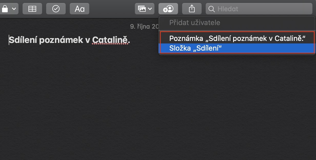 Lehkého přepracování se v macOS 10.15 Catalina dočkaly také poznámky. Ty nově nabízí speciální zobrazení v galerii, kromě něj si však ale můžete nastavit také sdílení poznámek, popřípadě celé složky s poznámkami, společně s možností upravit pravomoce pro uživatele, kterým k poznámkám dáte přístup. Jednoduše stačí, abyste si otevřeli aplikaci Poznámky a rozkliknuli poznámku, kterou chcete sdílet. Poté v pravé horní části okna klikněte na ikonu uživatele s malým +. Zde už si můžete zvolit, zdali chcete sdílet určitou poznámku, či celou složku. Jakmile na jednu z těchto možností kliknete, tak se zobrazí okno, kde si můžete nastavit oprávnění pro uživatele, se kterými budete poznámky sdílet.