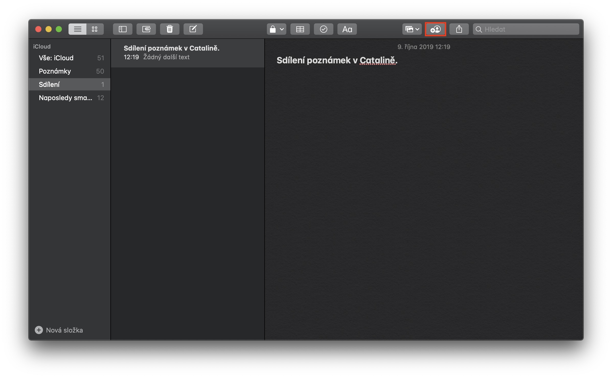Sdílení v aplikaci Poznámky