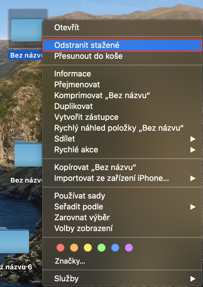 -> který chcete z iCloudu odstranit, kliknuli pravým tlačítkem, a poté z menu vybrali možnost Odstranit stažené.