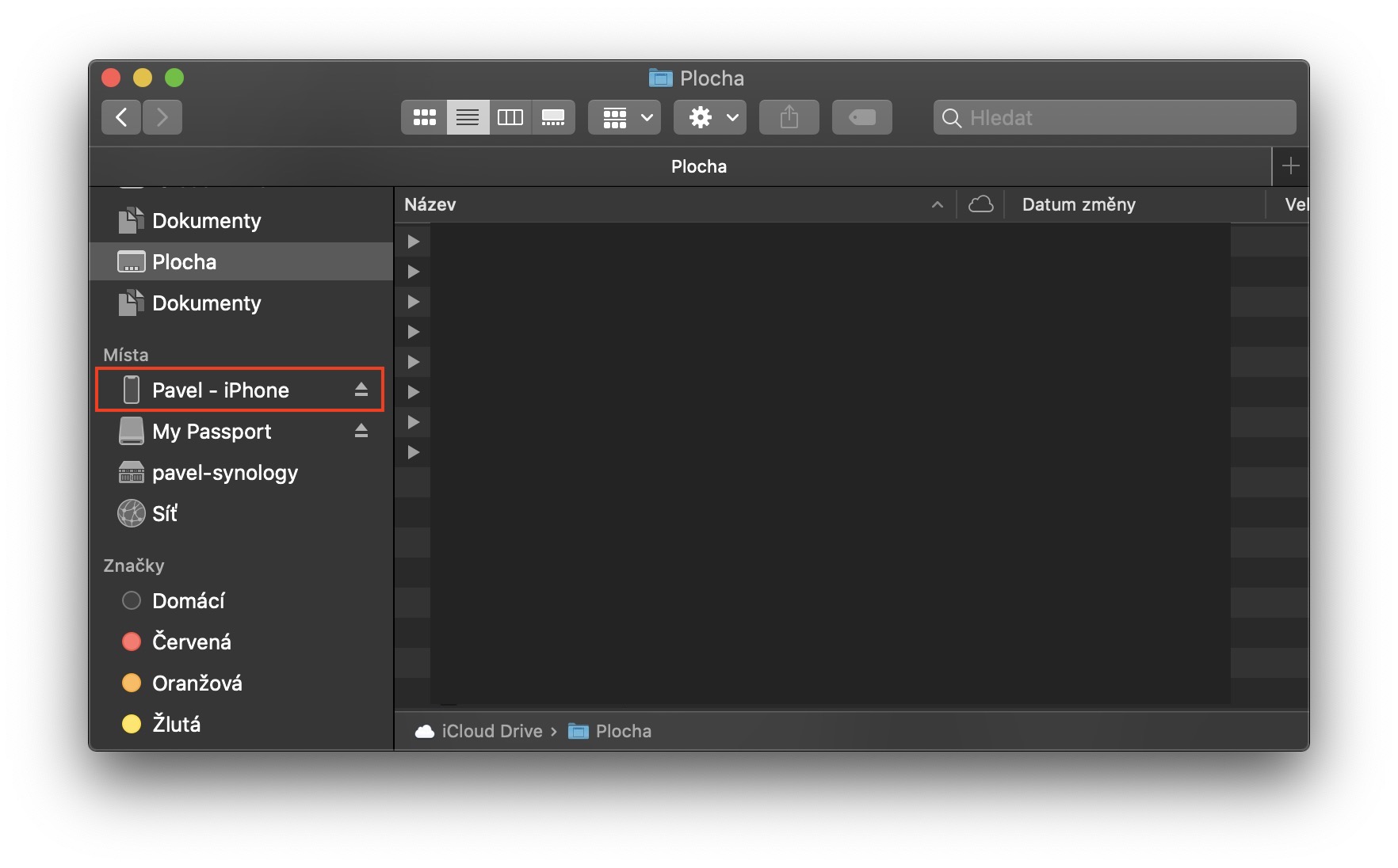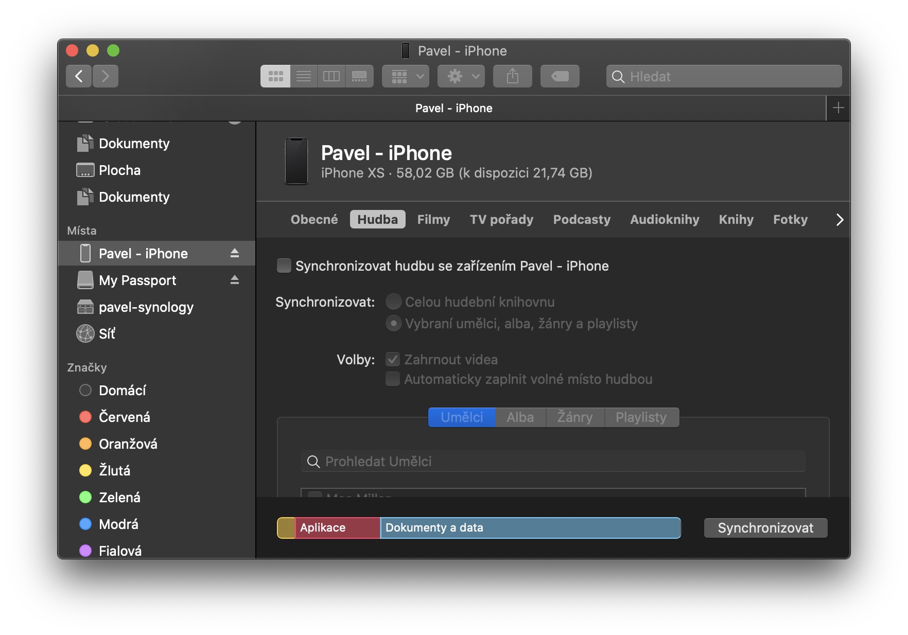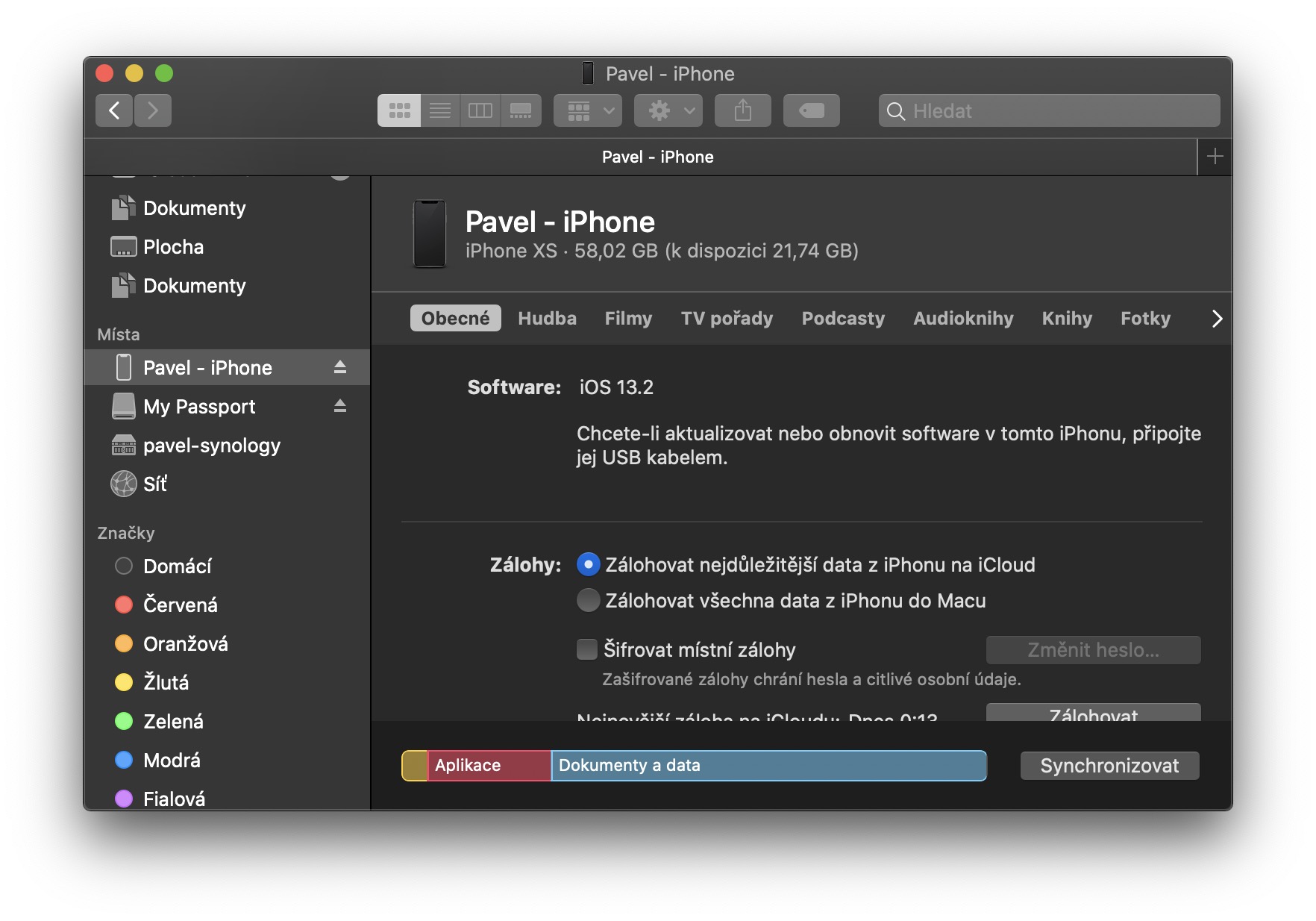 Správa zařízení ve Finderu