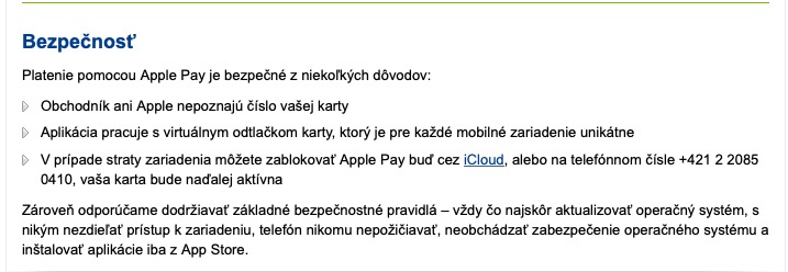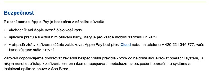V době psaní tohoto článku jako jediná banka, která dnes spustila Apple Pay, nezveřejnila žádnou tiskovou zprávu, kterou by média na novinku upozornila. Jediné, co podporu jablečné platební služby prozrazuje, je tak spuštění mikrostránky, na které klienti naleznou veškeré informace o tom, jak službu nastavit, jak jí využívat a další spoustu odpovědí na jejich nejčastější otázky. Na pár screenshotů z této mikrostránky se můžete podívat v galerii vedle tohoto odstavce, popřípadě navštivte přímo oficiální stránky banky.