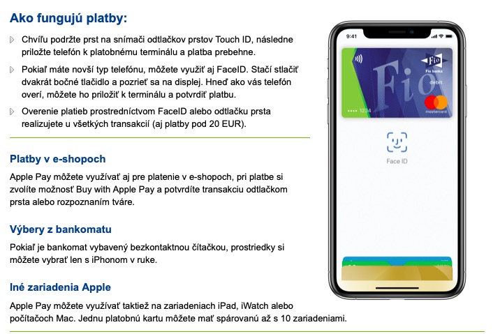 Fio banka ponúka svojim klientom platenie mobilným telefónom a inteligentnými hodinkami prostredníctvom Apple Pay. Rovnako tak bude možné jednoducho vyberať z bankomatov alebo platiť v e-shopoch