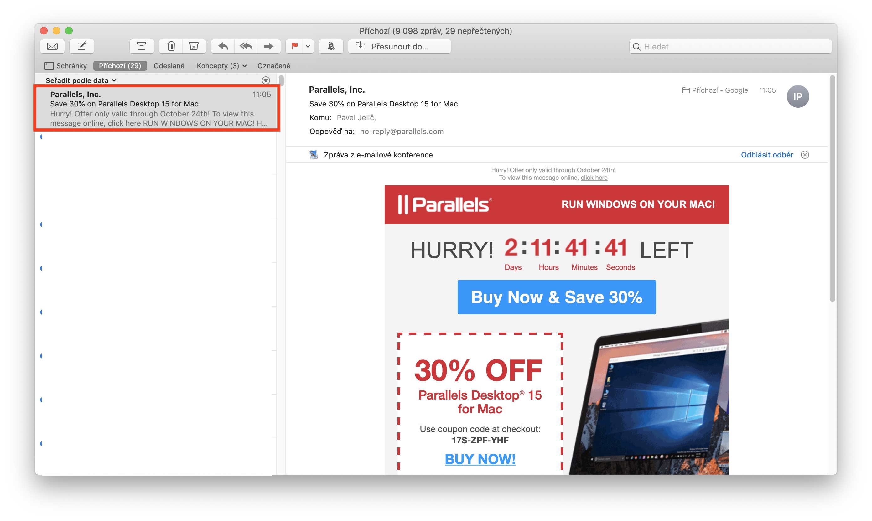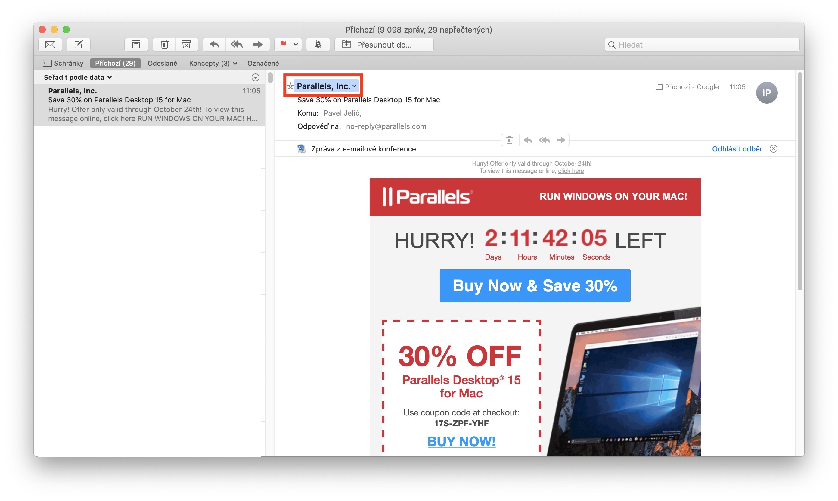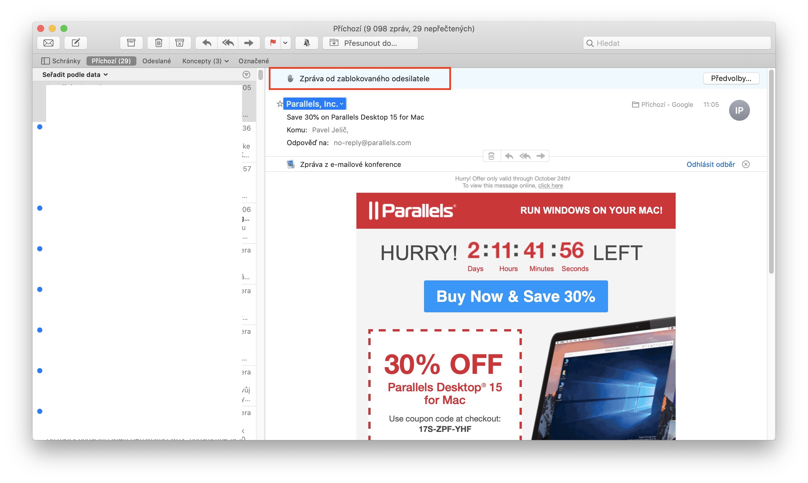 Jak v macOS Catalina v aplikaci Mail zablokovat odesílatele