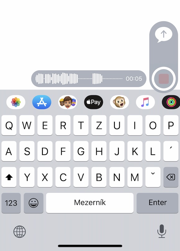 Psaní textových zpráv může být někdy zdlouhavé, jindy třeba nemáte možnost se na psaní zprávy soustředit, ale odeslat ji zkrátka musíte. Apple myslí i na tyto situace, proto přidal do své aplikace Zprávy možnost práce s hlasem. Určitě jste si ve zprávách všimli ikonky mikrofonu (v některých verzích se jedná o ikonku ekvalizéru v pravé části pole pro zadání zprávy). Pokud ji přidržíte, můžete adresátovi namluvit hlasovou zprávu, kterou puštěním ikonky odešlete. Další možností je nadiktovat psanou zprávu. Pro tyto účely slouží na softwarové klávesnici na vašem iOS zařízení ikonka mikrofonu – ta se obvykle nachází v pravém dolním rohu klávesnice.