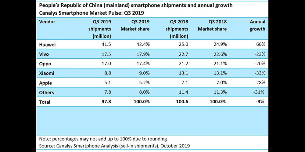 Nebýt iPhonu 11, který se podepsal na 40% všech dodaných kusů ve třetím čtvrtletí, jablečná společnost by zažila hlubší propad do červených čísel. Naštěstí byl Apple na vydání v Číně lépe připraven a díky nižší ceně i větší dostupnosti se nová generace ukázala jako trefa do černého. Bohužel kalifornský technologický gigant příliš na východě nepochodí ani s 5G, které bude obsahovat příští generace iPhonu. Čínští i jihokorejští výrobci jsou v tomto ohledu poměrně napřed a telefony s touto technologií se za nižší cenu začínají objevovat již nyní. Hlavním tahounem je v tomto ohledu Huawei, který za rok dodal 41.5 milionů kusů telefonů a uzmul si pro sebe 42% celkového podílu na trhu. Konec konců, čínská společnost roste tempem 66% za rok, což je vzhledem k okolnostem přinejmenším překvapivé. Výrobce dokonce zastínil i známé giganty jako je Oppo, Vivo, Xiaomi nebo právě Apple, kteří ovládají pouze 54% trhu. To je o 4% méně než ve druhém čtvrtletí letošního roku a rovnou o 14% méně než před rokem. Uvidíme, jak se k situaci jablečná společnost postaví a zda dokáže v budoucnu efektivně konkurovat tamním značkám.
