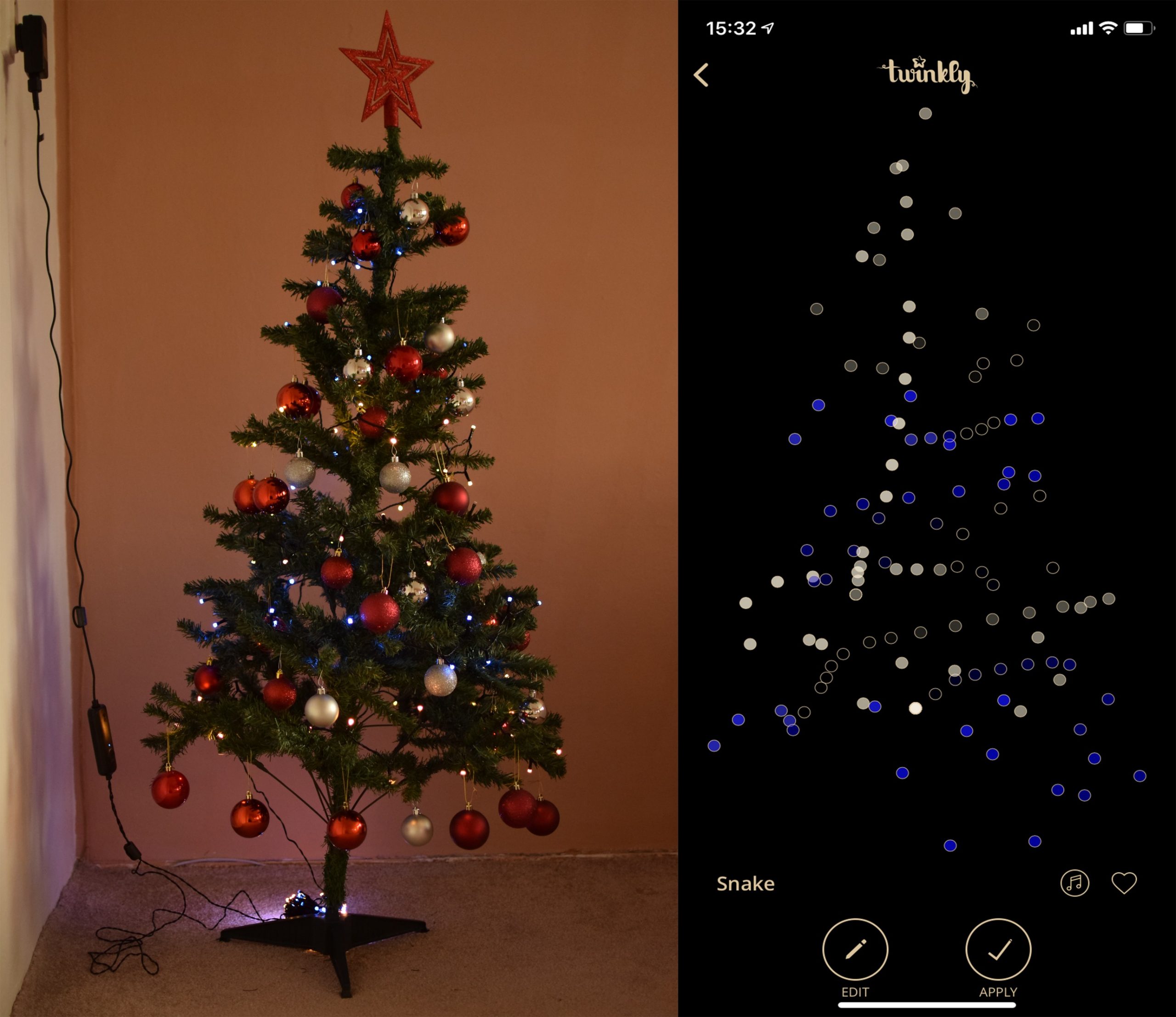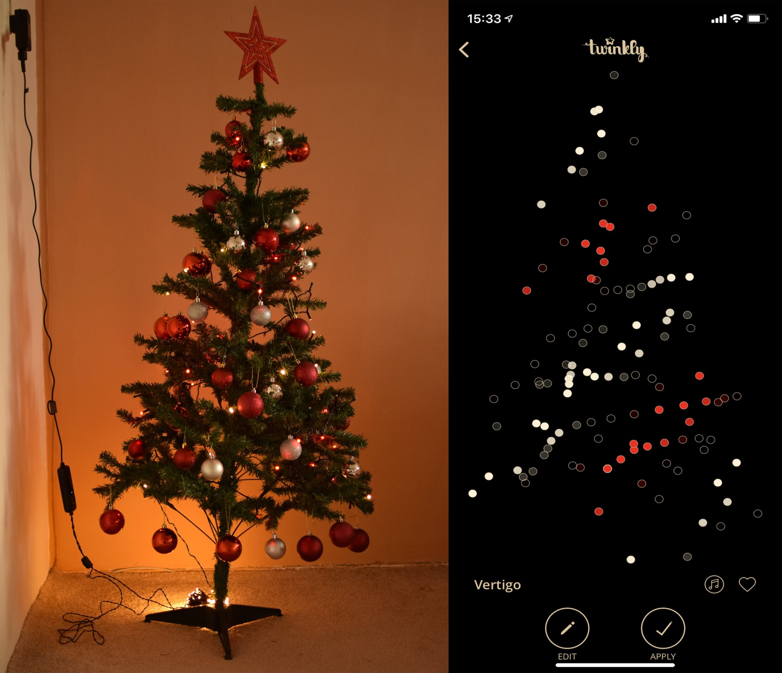 Dalším nezbytným krokem po propojení světýlek s telefonem je pak jejich “naskenování” na stromečku, díky kterému je řetěz následně schopen zobrazovat světelné efekty přesně tak, jak vidíte na displeji svého telefonu. Skenování není naštěstí nic těžkého, jelikož se provádí de facto jen namířením fotoaparátu na stromeček a chvilkovým čekáním, než si aplikace vše potřebné zaznamená. Následně vám vytvoří přímo na displeji přesný model uspořádání světýlek na vašem stromečku a vy se poté můžete naplno oddat testování této parády.