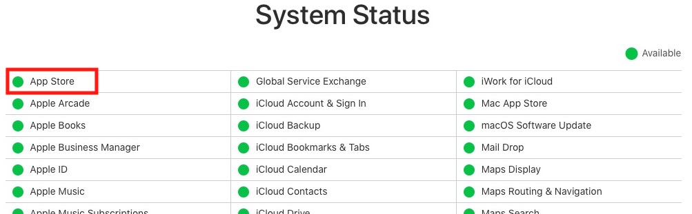 Občas se také stává, že chyba není na vaše straně, ale na straně samotného Applu – konkrétně jeho serverů. U veškerých služeb, které Apple nabízí, si můžete nechat zobrazit, zdali náhodou Apple nemá nějaký problém. Můžete tak učinit na stránkách pomocí tohoto odkazu, kde se kolonka App Store nachází hned na první příčce. Kromě stavu App Storu zde můžete sledovat také stav ostatních služeb.
