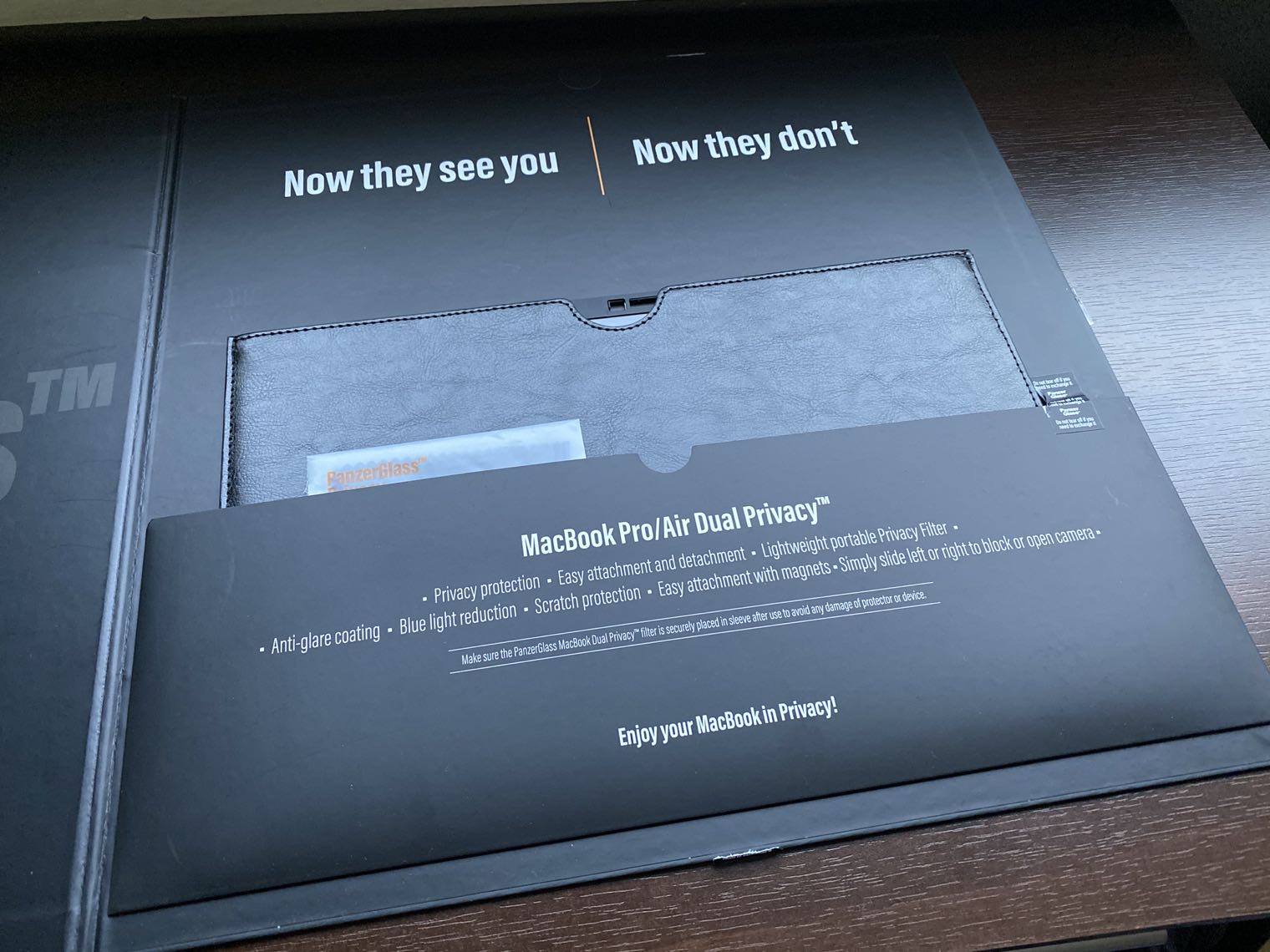 PanzerGlass Dual Privacy, jak se příslušenství oficiálně nazývá, je speciální filtr, který snadno přichytnete na displej MacBooku pomocí magnetu. I díky tomu je proto možné jej kdykoli v případě potřeby sundat a zase opětovně použít. Hlavní funkce doplňku spočívá v tom, že po jeho nasazení se displej při pohledu zprava nebo zleva stane prakticky nečitelný, zatímco zpříma je vidět veškerý obsah. Filtr je tudíž vhodný pro uživatele, kteří svůj notebook používají na veřejných místech, protože skryje obsah obrazovky před kolemjdoucími nebo nechtěnými pohledy.