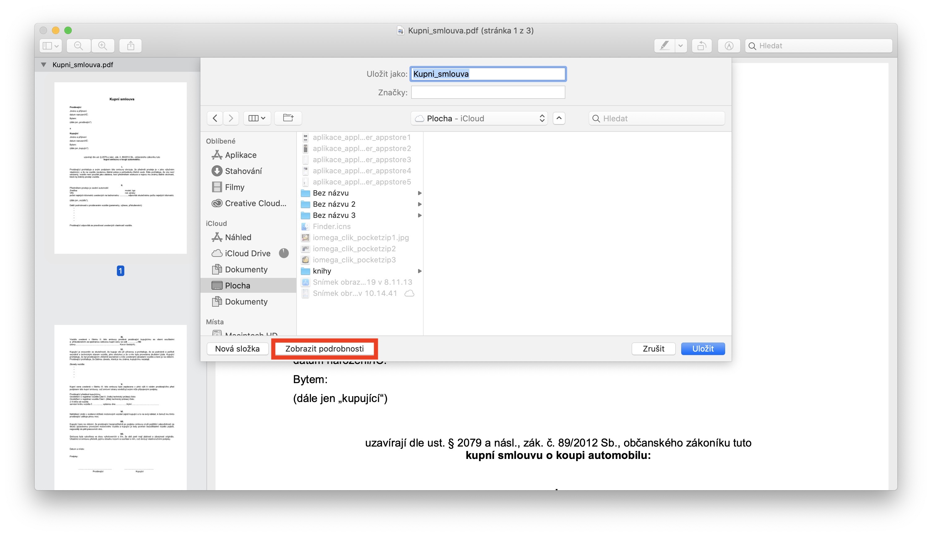 Nejprve si samozřejmě na vašem Macu vytvořte anebo otevřete PDF soubor, který chcete zašifrovat. Jakmile jej budete mít, tak jej otevřete v nativní aplikaci Náhled. Poté v levé části horní lišty klikněte na tlačítko Soubor a z rozbalovacího menu, které se zobrazí, vyberte možnost Exportovat jako PDF… Zobrazí se nové okno, kde si můžete zvolit, kam se má PDF soubor exportovat. Ještě před exportem ale stiskněte v levé dolní části okna tlačítko Zobrazit podrobnosti. Zde už stačí zaškrtnout možnost Šifrování a do políčka Heslo zadat heslo k PDF souboru. Stejné heslo ještě potvrďte napsáním do kolonky Ověření. Poté stačí kliknout na modré tlačítko Uložit v pravé dolní části okna. Tímto dojde k uložení zašifrovaného PDF souboru.
