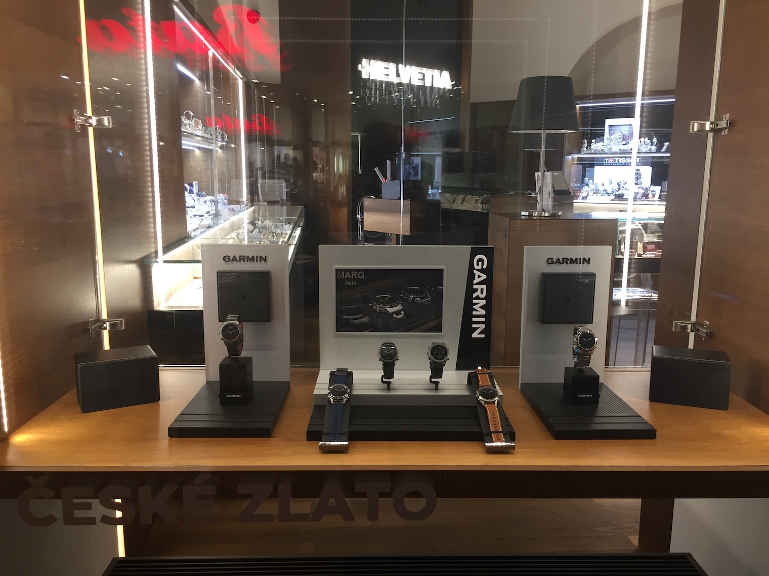 Prodejna musí splňovat velmi přísná kritéria selektivní distribuce. Nejen jasně daným sortimentem , který na prodejně musím mít, ale také lokalitou a určitou designovou úrovní. Samozřejmostí je odborně školený personál, technické zabezpečení prodejního místa i řešení mého e-shopu. Podmínek spolupráce ze strany distribuce Garmin je docela dost, odměnou je pro nás však možnost nabízet svým zákazníkům fantastický produkt. Stali jsme se kromě dvou značkových prodejen GARMIN v Praze jediným prodejcem v České republice. Je to pro tým HELVETIA hodinky a šperky odměna za práci, kterou děláme od roku 2011.