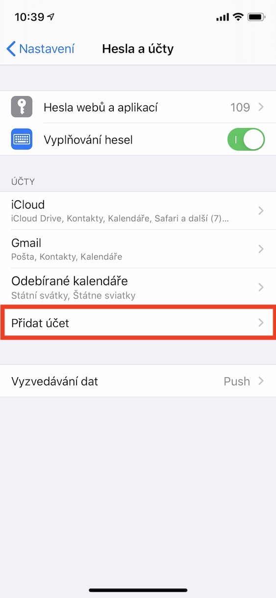9. Popřípadě přídáte znovu váš učet do aplikace „Mail“