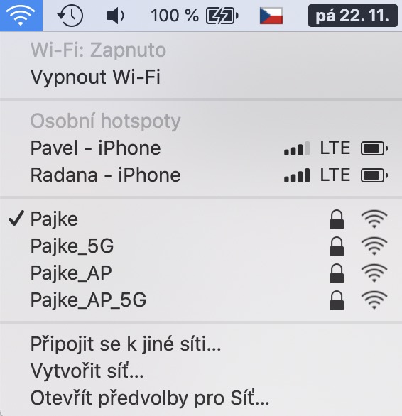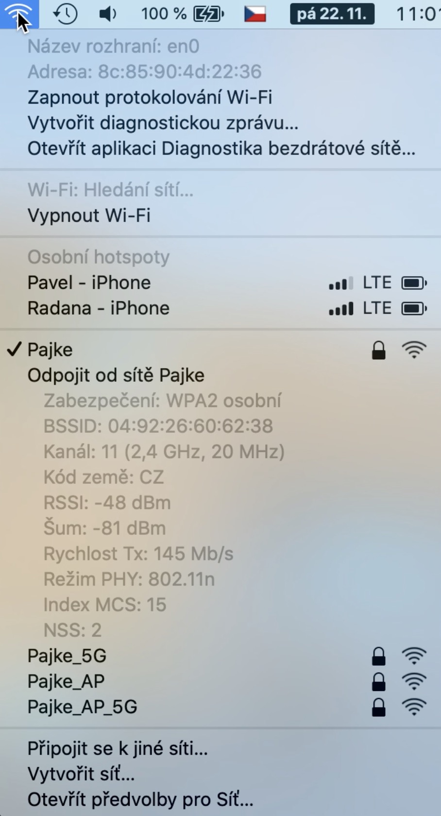 Největší změnu uvidíte při stisknuté klávese Option u ikony Wi-Fi. Pokud na tuto ikonu kliknete bez tlačítka Option, tak se zobrazí pouze možnosti pro vypnutí Wi-Fi, anebo pro připojení ke konkrétní síti. Jakmile však na ikonu kliknete s tlačítkem Option, tak se k těmto možnostem přidají další informace. Zobrazí se například MAC adresa společně s informacemi o síti, ke které jste připojeni (zabezpečení, kanál, kód země, RSSI, šum, rychlost a další). Hodit se může také nástroj pro Diagnostiku bezdrátové sítě, například pro nastavení správného kanálu Wi-Fi apod.