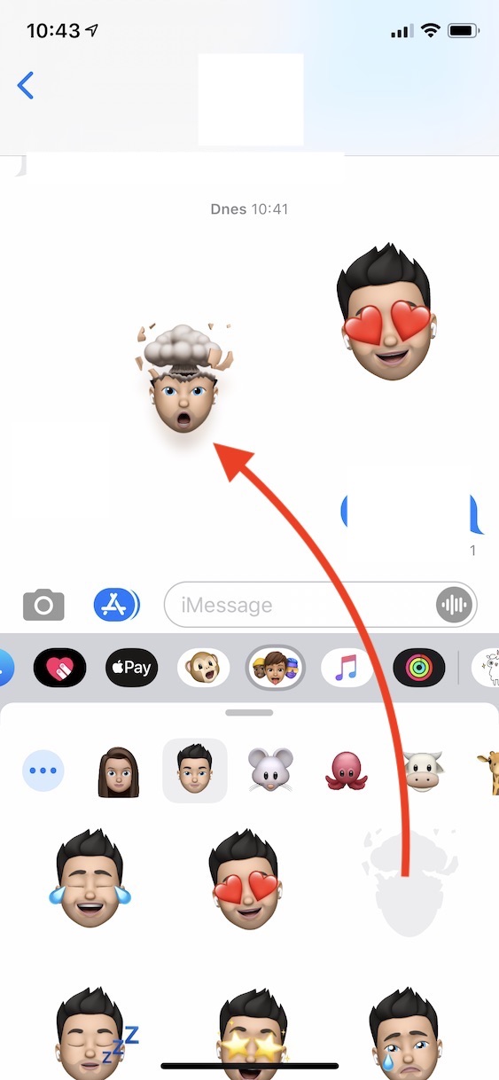 Pokud vám někdo pošle zprávu a chcete přímo na ni odpovědět pomocí samolepky, tak můžete. Ve skutečnosti můžete samolepku v okně iMessage umístit prakticky na jakoukoliv zprávu. Nejste tedy omezení pouze textovým polem a další zprávou. Pokud by se vám tato možnost hodila, tak jednoduše stačí, abyste si v liště otevřeli určitou sadu samolepek a vybrali si tu, kterou chcete použít. Poté na ni podržte prst a po chvilce ji začnete přesouvat směrem do samotného chatu. Mezitím můžete ještě změnit velikost samolepky roztažením dvou prstů od sebe nebo k sobě. Jakmile budete mít samolepku tam, kde jste chtěli, tak zvedněte prst z displeje a je hotovo.