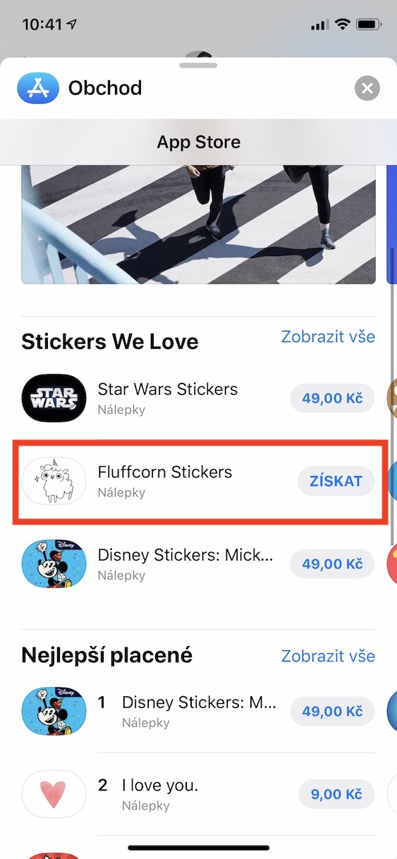 Ve Zprávách samozřejmě nejsou k dispozici pouze nativní samolepky, které svým způsobem vychází z Animoji. Apple pro iMessage vytvořil vlastní App Store, odkud můžete všemožné samolepky a další doplňky stahovat. Pro otevření App Storu stačí, abyste v liště nad textovým polem pro zprávu najeli úplně doleva, kde klepněte na ikonu App Store. Otevře se vám okno, kde už si vyberte samolepky, které chcete stáhnout. Poté u nich klepněte na možnost Získat a proveďte stažení. Po stažení se samolepky objeví v liště nad textovým polem pro zprávu ve vlastní sekci, nikoliv v nativní sekci Nálepky. Samolepky můžete stahovat i skrze klasický App Store, avšak v něm je jejich hledání o něco složitější, jelikož se vám nezobrazí jejich žebříčky a další informace.