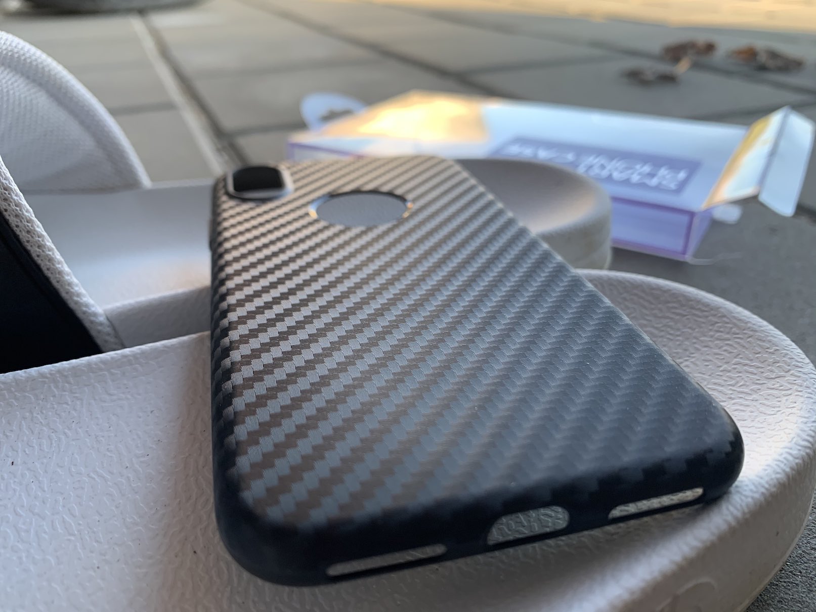 V rámci recenzování jsem měl verzi pro iPhone X či iPhone XS. V nabídce jsou však samozřejmě i kryty pro další iPhony – konkrétně pro iPhone XS Max a iPhone XR. Pro nejnovější modely v podobě 11 a 11 Pro (Max) bohužel kryty prozatím dostupné nejsou. Kryt Delicate Shadow od společnosti hoco. vás zaujme především svou tloušťkou, která je pouze 0,8 mm. Po nasazení krytu se tedy iPhone téměř nezvětší a díky tomu, že kryt dokonale obepíná jeho křivky, téměř nepřijdete ani o svůj unikátní design. I přesto, že se na první pohled může zdát, že je kryt vyroben z karbonu (anebo jemu podobnému materiálu), o karbon se nejedná – ve skutečnosti je kryt klasicky silikonový.