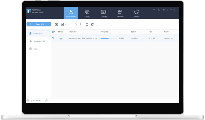 Společně s tímto programem můžete jednoduše stahovat videa z různých webových stránek, anebo ze sociálních sítí. K dispozici je seznam více než 100 stránek, ze kterých program Acethinker Video Keeper zvládne video stáhnout. To ale samozřejmě není všechno. Kromě toho zvládne Video Keeper také konverzi všemožných formátů, abyste si vaše videa mohli přehrát úplně kdekoliv. K dispozici je také možnost pro stažení celého playlistu z YouTube jediným kliknutím a samozřejmostí je stahování videí bez limitu rychlosti stahování, společně s maximální možnou výstupní kvalitou videa.
