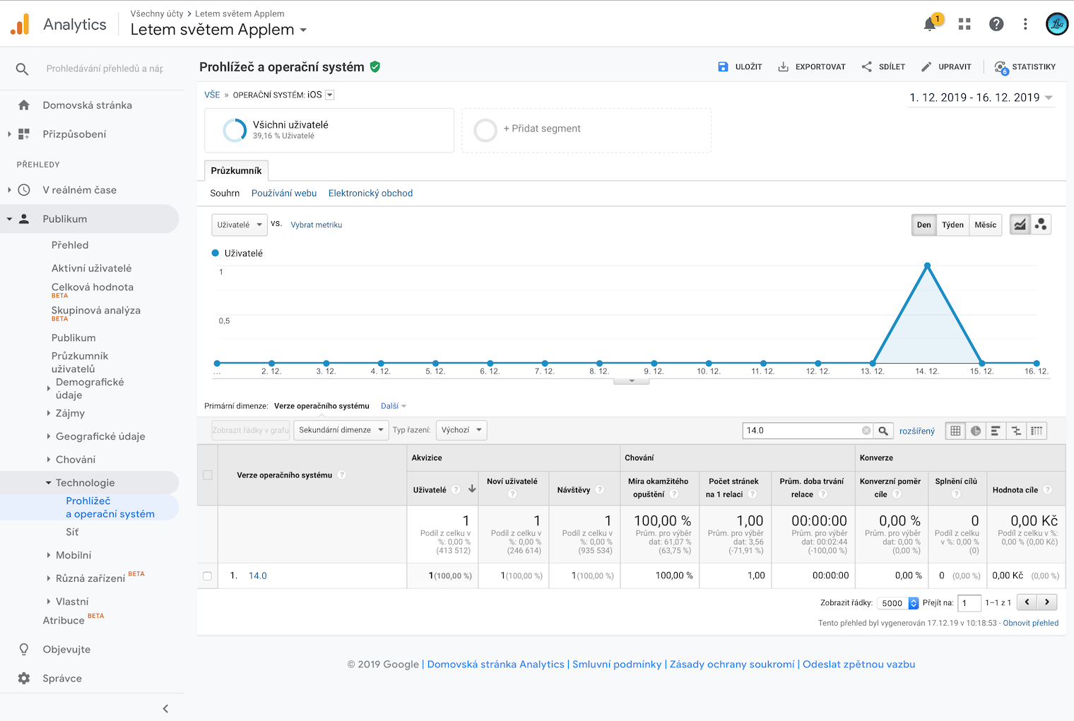 Stejně jako v předchozích letech, i letos jsme netrpělivě čekali, kdy se v našich Google Analytics záznamech objeví první návštěvníci testující iOS 14 a MacOS 10.16. Apple testuje nové operační systémy dlouho předtím, než je poprvé ukáže veřejnosti, což bývá pravidelně během největší vývojářské konference WWDC, jenž se každoročně uskutečňuje během června. Nové operační systémy jsou nejprve testovány pouze interně, posléze pak přistupují také k internetu a uživatelé, kteří systémy testují čas od času zavítají také na náš magazín, kde je zaznamená nástroj měřící počty návštěv a informace o návštěvnících Google Analytics.