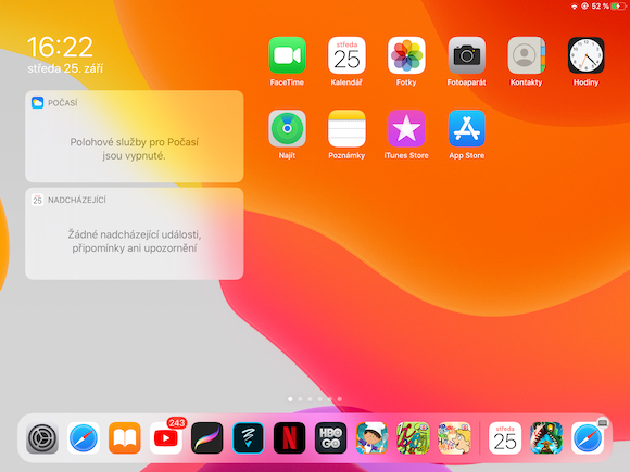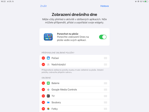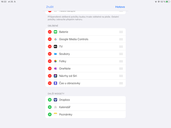 Předpokládám, že váš iPad nalezený pod stromečkem běží na nejnovějším operačním systému iPadOS 13. Pokud ano, pak máte možnost si na domovskou obrazovku nastavit widgety. Ty byly na iPadu dostupné i dříve, avšak byly řešeny podobně jako na iPhonu – tedy v boční liště- a tudíž nebyly možná využívány tak, jak mohly. To však byla obrovská škoda, jelikož widgety dokáží též v mnoha ohledech usnadnit život, potažmo využívání zařízení. Pokud využíváte například aktivně kalendář, ale třeba i zkratky nebo různé aplikace na počasí, díky widgetům je nemusíte zpravidla téměř pouštět, ale veškeré důležité věci se dozvíte právě přes tyto „miniaplikace“. Jedná se tedy o vychytávku, která vám dokáže ušetřit drahocenný čas, přičemž jejím jediným úskalím je nastavení. Tomu byste měli opět věnovat pozornost, jelikož přemíra widgetů v jejich nabídce je ve výsledku kontraproduktivní. Kromě ideálního počtu widgetů si vyzkoušejte i jejich velké i malé verze, které mnoho aplikací již nabízí. Jedná se de facto o dvě možnosti zobrazení daného widgetu, přičemž jedna z nich (malá) zobrazuje jen základní informace, druhá z nich (velká) pak informace o poznání komplexnější. Rozhodně ale neplatí, že komplexnější = lepší.