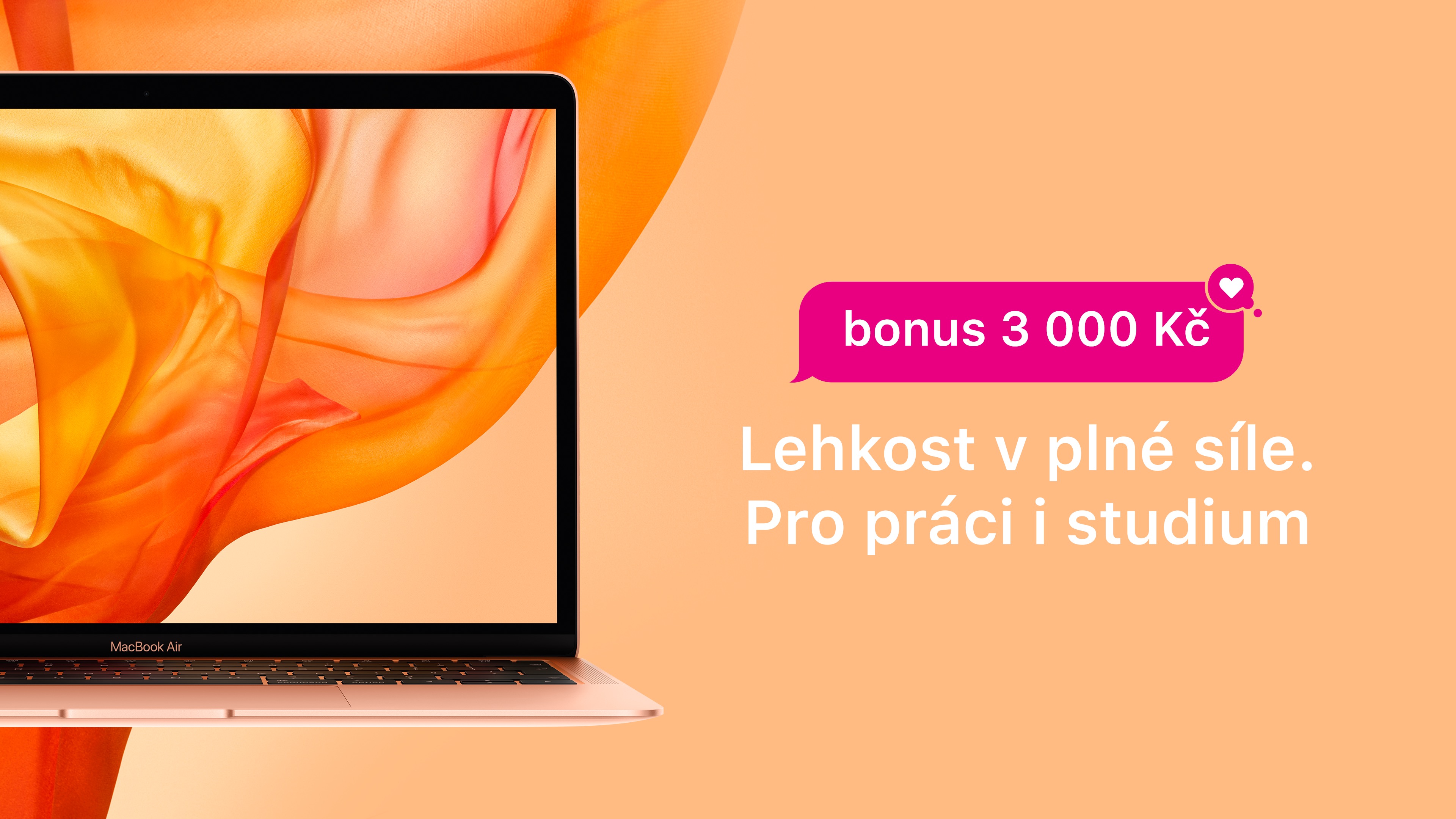 Pro získání zmiňovaných 3 000 Kč vám postačí vložit do košíku některý z loňských modelů MacBooku Air a následné připsání slevového kódu CASHBACK3000. Akce platí pouze na nejnovější jablečné notebooky s přívlastkem Air, které jsou pro každodenní práci přímo stvořené. Tyto stroje jsou totiž osazeny dvoujádrovým procesorem Intel Core i5, jsou extrémně lehké a jejich dominantou je jejich baterie. Ta totiž na jedno nabití dokáže vydržet celý den aktivního používání, díky čemuž byste těmto produktům jen marně hledali konkurenci. Bonus ve výši tří tisíc korun můžete využít například při nákupu nových sluchátek Beats, Apple TV nebo například stylového obalu. Celá akce platí do 9. 2. 2020.