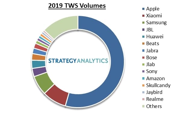 Podle analytiků se podařilo Applu v roce 2019 prodat na 60 milionů párů AirPods a AirPods Pro, což mu zajistilo více než 50% podíl na trhu s bezdrátovými sluchátky (přesněji Truly Wireless). Velmi zajímavé je i to, že celý trh zaznamenal meziročně 200% zvýšení prodejů bezdrátových sluchátek. Zájem o tento typ produktu je tedy skutečně enormní. Co se pak týče AirPods, jejich prodeje představovaly v loňském roce zhruba 71 % celkových výnosů vygenerovaného celým trhem, za což vděčí kromě počtem prodaných kusů i poměrně vysokou cenou.