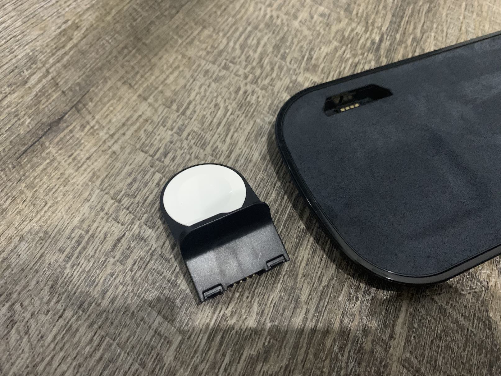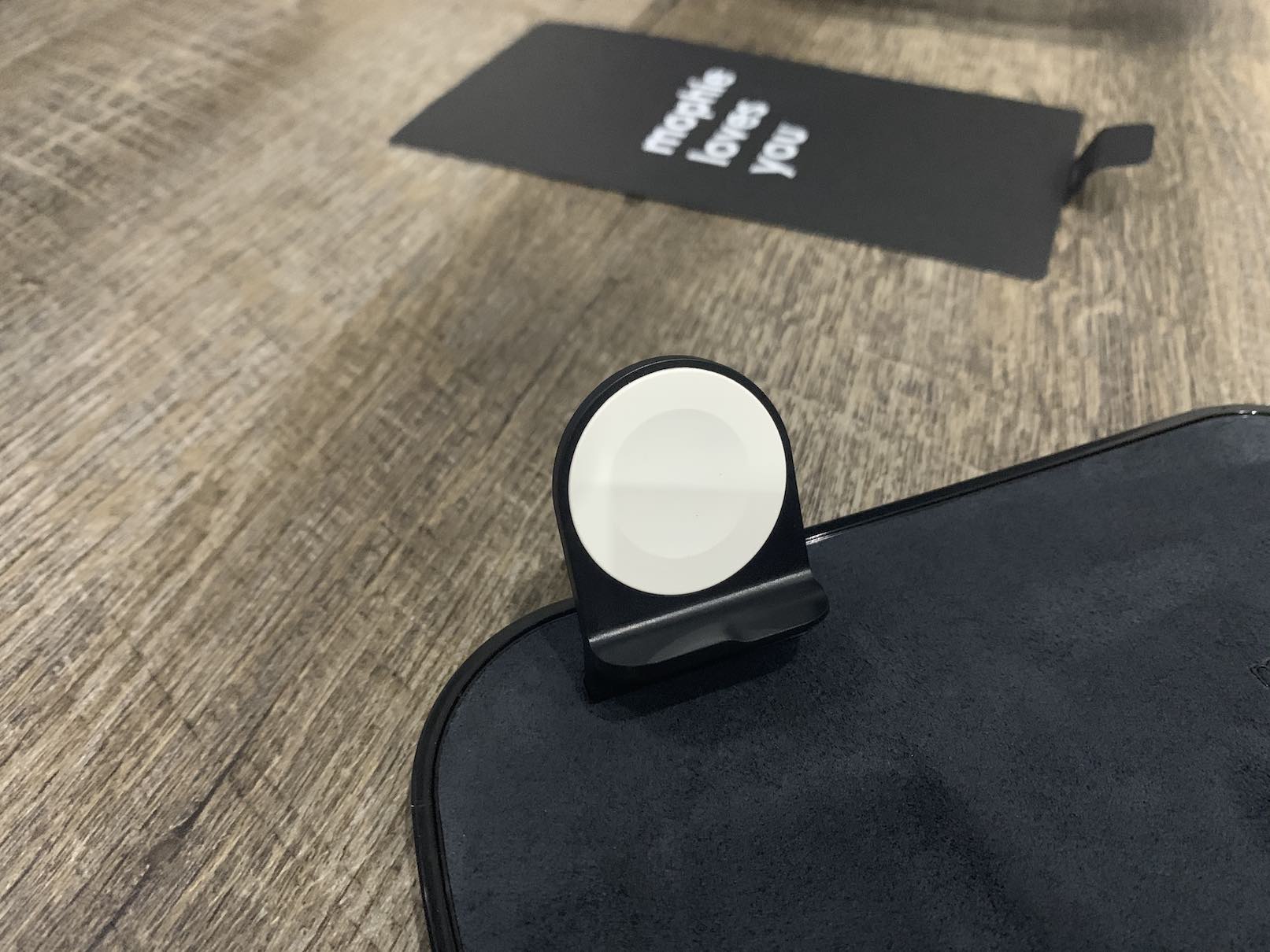 Velmi zajímavé je řešení samostatného modulu pro Apple Watch. V průběhu posledních měsíců testovat všemožné bezdrátové stanice a nabíječky, přičemž naprostá většina z nich měla nabíjení Apple Watch řešené jen přes plastový držák na magnetický nabíjecí kabel přibalovaný k hodinkám. To ve finále znamená, že z nabíječky netrčel jeden drát, ale rovnou dva, což nemusí některým uživatelům vyhovovat. Mophie však přišla s řešením, které je dle mého naprosto perfektní, jelikož nevyžaduje žádný další kabel. Kostičku s kulatým modulem, která je součástí nabíjení, jednoduše zacvaknete do portu na stanici a můžete nabíjet. Nabíjecí modul navíc potvrzuje, že má Mophie skutečný smysl pro detail. Na jeho spodní straně totiž naleznete výřez, díky kterému můžete hodinka na nabíječku umístit jak digitální korunkou dolů, tak nahoru. Bez něj by bylo možné umístění jen s korunkou nahoru.