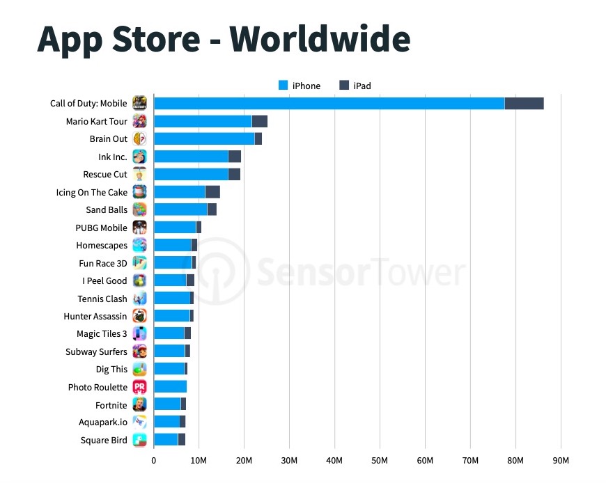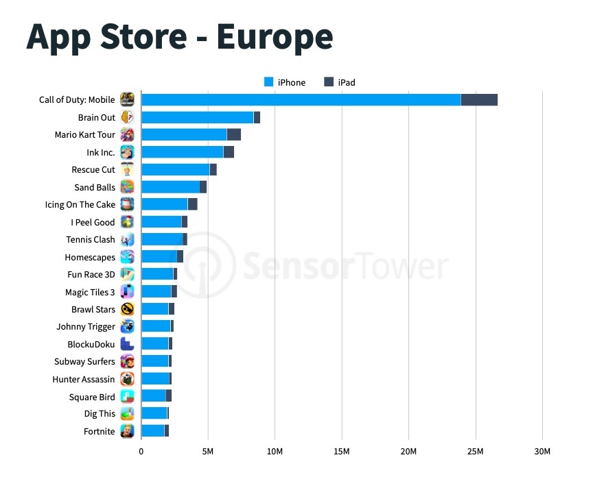 V uplynulém čtvrtletí se App Storu velmi dařilo, což ostatně potvrdil nedávno samotný Apple prozrazením finančních výsledků jeho obchodu s aplikacemi za Vánoce a Nový rok. Mnohé z vás možná napadlo, co přesně šlo v tomto čtvrtletí v App Storu nejvíce na odbyt a jaké aplikace se naopak už tak velké oblibě uživatelů netěší. Na tyto dvě otázky přinesla dnes odpoledne velmi zajímavé odpovědi analytická společnost SensorTower, která sestavila žebříčky dvaceti nejstahovanějších aplikací a her v Evropě, ale i celosvětově.
