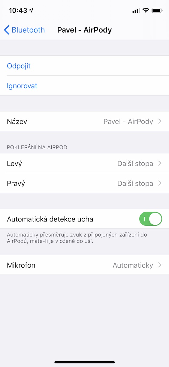 Pokud chcete pomocí AirPodů příchozí hovor ihned odmítnout, tak bohužel máte smůlu. Buď budete muset sáhnout po iPhonu a hovor odmítnout manuálně, anebo jednoduše hovor necháte vyzvánět tak dlouho, dokud jej druhá strana neukončí. Nutno podotknout, že s AirPody lze jednoduše přijímat jak klasické hovory, tak také FaceTime hovory, a to bez rozdílů. Mnoho nastavení, která se týkají vašich AirPodů, naleznete jinak v Nastavení -> Bluetooth, kde klikněte na ikonu i v kroužku u vašich připojených AirPodů.