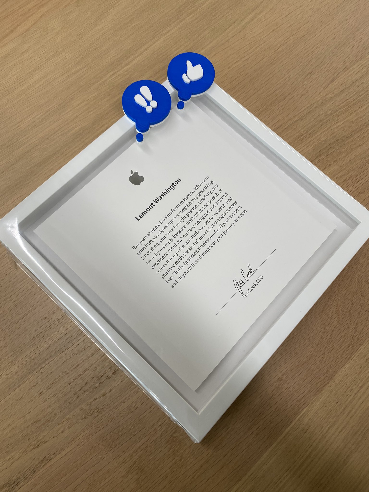 Lemont Washington dostal za pětiletou věrnou službu Apple osobní poděkování od samotného výkonného ředitele jablečné společnosti, Tima Cooka. Washington pracuje v Applu od září roku 2014 jakožto vrchní softwarový inženýr. Během těchto pěti let pracoval na Swift Playgrounds, HomeKitu a Zprávách. Od pětiletého výročí uběhlo sice již téměř pět měsíců, avšak Tim Cook nezapomněl. Na zarámovaném poděkování stojí v překladu následující text: „Pět let v Applu je opravdu významný milník. Když jsi sem přišel, domluvili jsme se na opravdu skvělých věcech. Od té doby přinášíš do naší společnosti vášeň, kreativitu a houževnatost – to je to, co vyžaduje honba za dokonalostí. Podpořil jsi a inspiroval ostatní prostřednictvím standardů, které sis sám stanovil. A máš obrovský dopad na život mnoha lidí. To je významné. Děkuji – za vše, co jsi udělal, a za vše, co ještě uděláš během tvé cesty v Applu.“ Poděkování je samozřejmě zakončeno podpisem Tima Cooka.