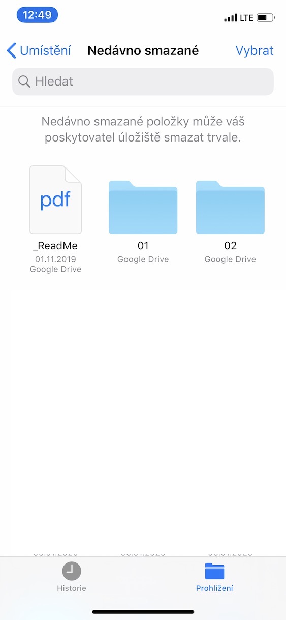 Možná se ptáte, zdali lze obnovit soubory z iCloud Drive i na iPhonu či iPadu. Odpověď zní ano, lze, a to dokonce ještě o něco více jednoduše než na Macu. V rámci iOS či iPadOS stačí, abyste otevřeli aplikaci Soubory. Zde poté v pravém dolním rohu klepněte na možnost Prohlížení a z menu, které se zobrazí, rozklikněte záložku Nedávno smazané. Odsud už lze jednoduše obnovit všechny soubory, které byly smazány před méně než 30 dny.