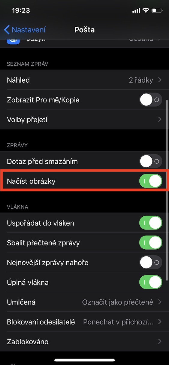 Zabránit sledování můžete jednoduše tak, že na svých zařízeních nastavíte, aby se při otevření mailu jednoduše nenačítaly obrázky do té doby, dokud to sami nepovolíte. Sami si tak můžete určit, kdy ono potvrzení o přečtení dotyčnému odesilateli přijde. Na vašem iPhonu či iPadu, na kterém používáte nativní aplikaci Mail jako svého primárního poštovního klienta, se přesuňte do nativní aplikace Nastavení. Zde poté stačí, abyste sjeli níže a rozkliknuli kolonku Pošta. Poté sjeďte opět o kousek níž a v sekci Zprávy deaktivujte funkci Načíst obrázky.