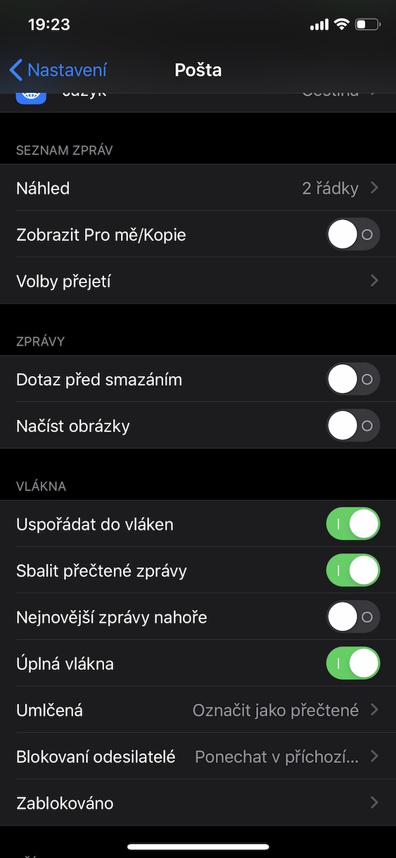 Jak na iPhonu deaktivovat zaslání potvrzení o přečtení mailu odesilateli